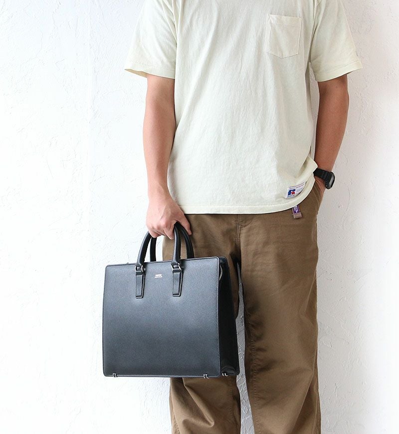 しなやかな見た目のエンボス加工レザーを使用したビジネスシリーズ「FLUX」のダレスバッグ。