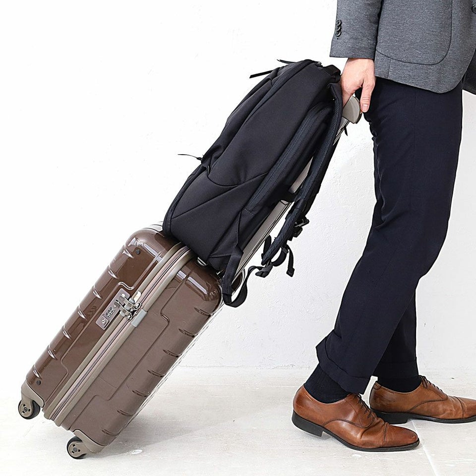 背面にはキャリーハンドルに通せるループがついており、出張や旅行などにも便利です。