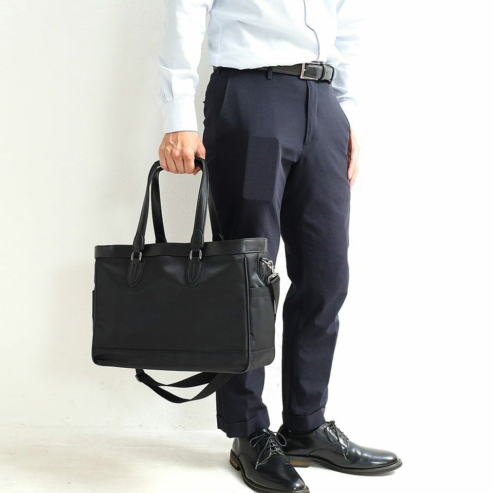 ナイロンとPVC素材のコンビネーションにより異素材コントラストが生むカジュアル感が新しいユニ感覚のビジネストート