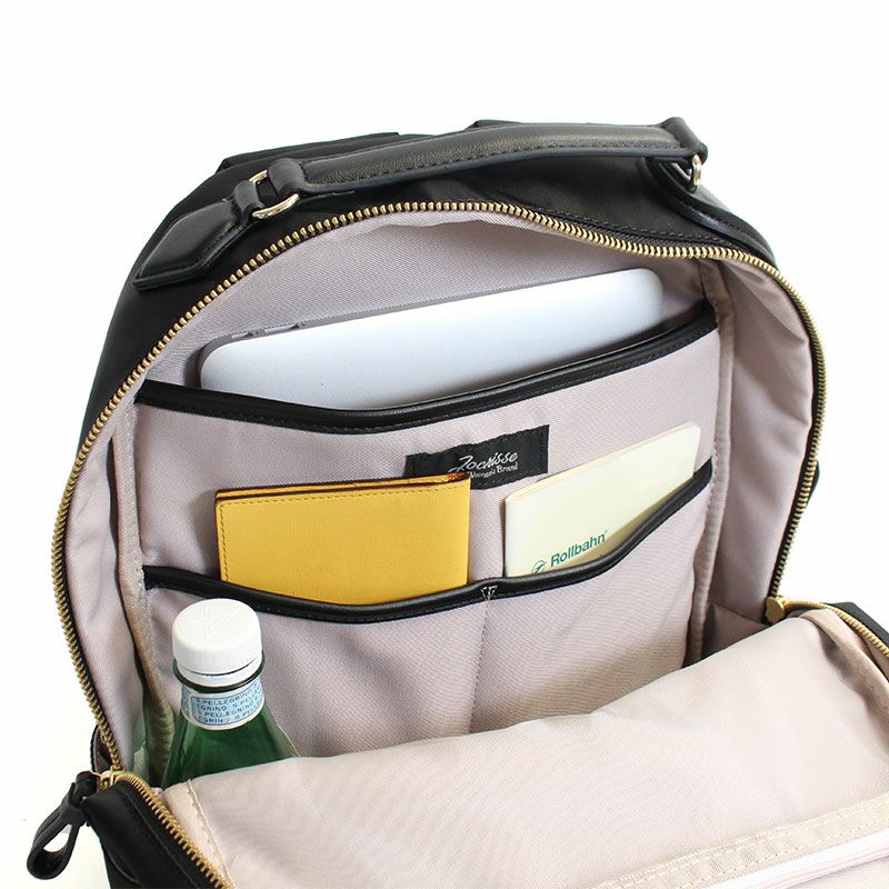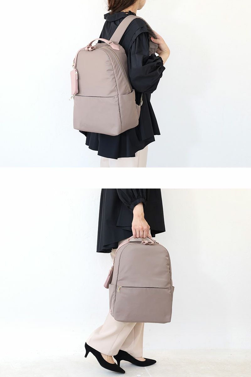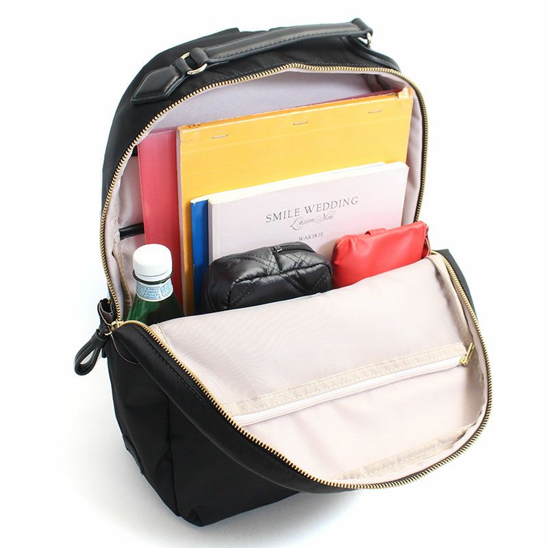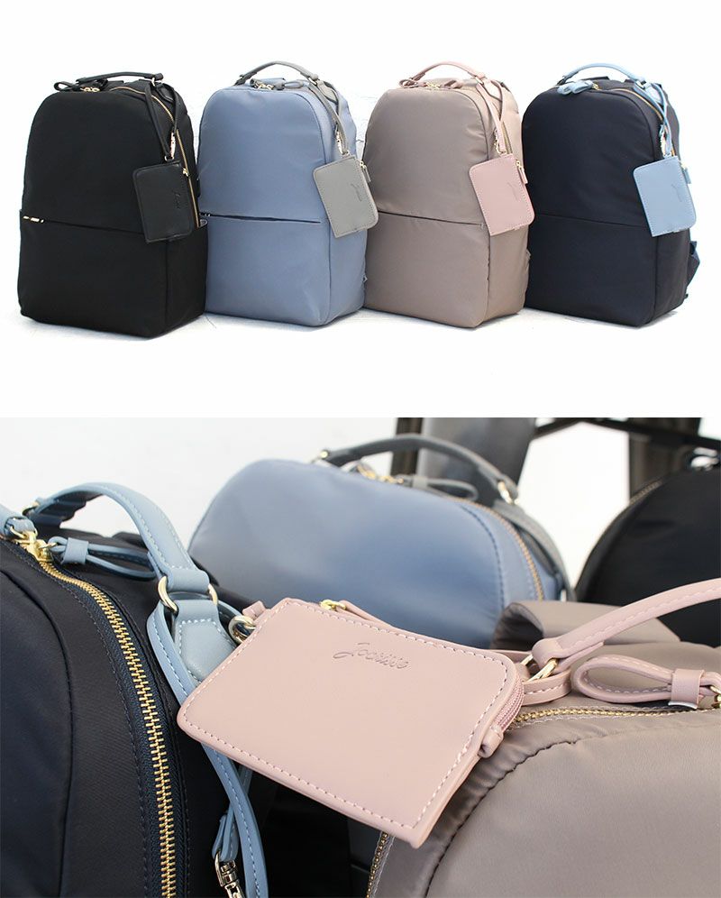 フロント、バッグにはそれぞれ小物収納に便利なファスナーポケットが備わっています。