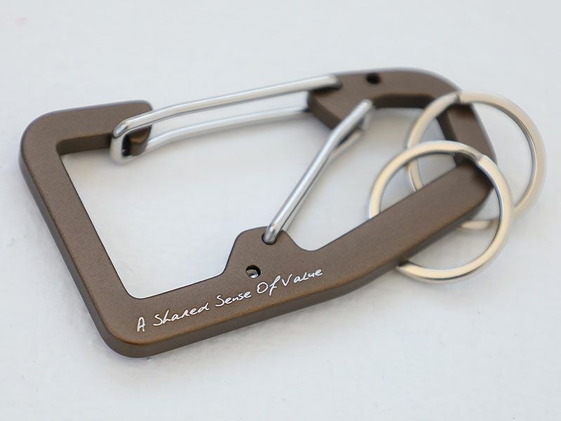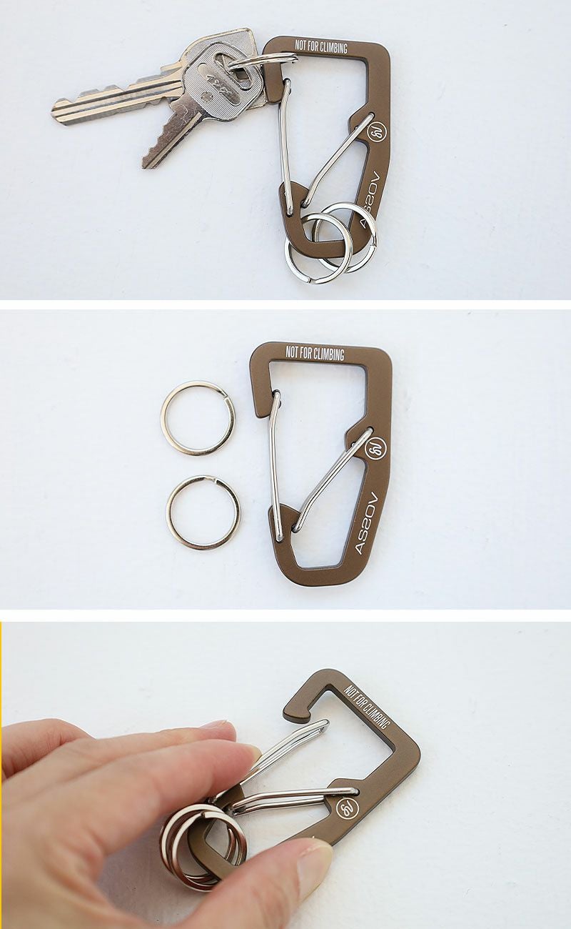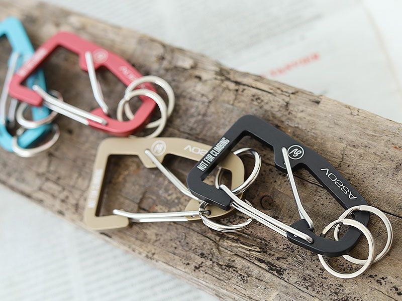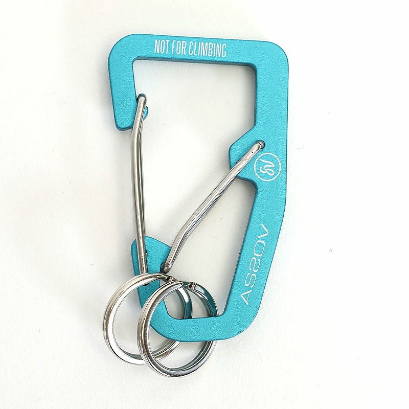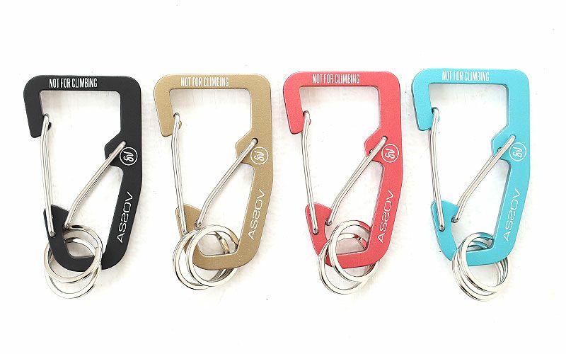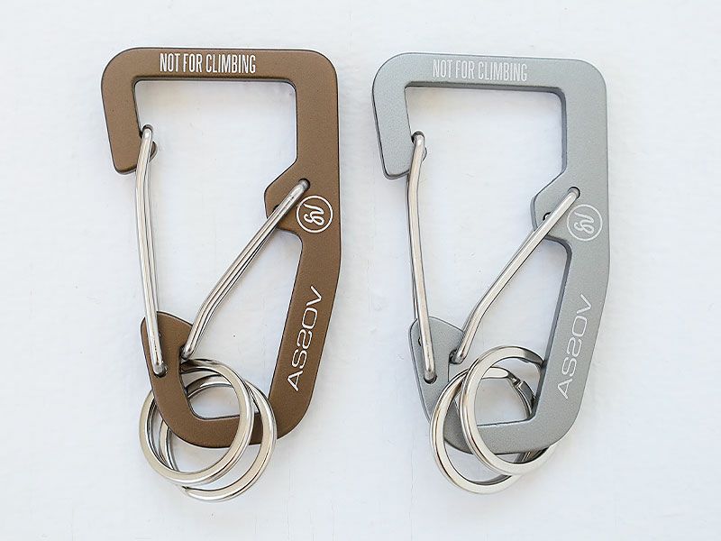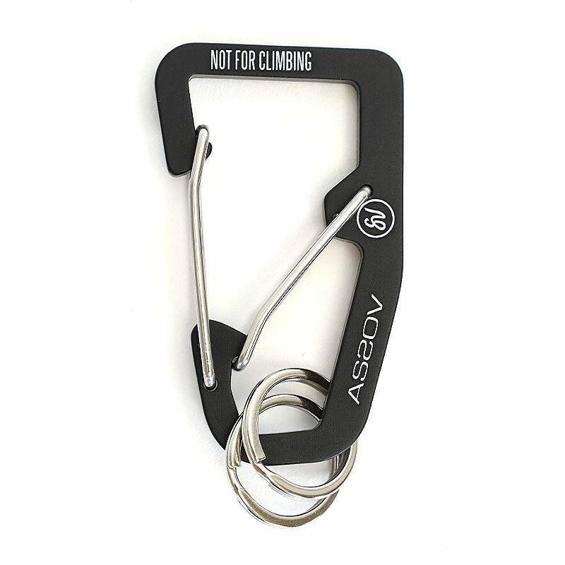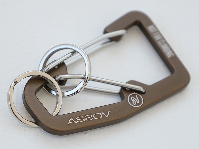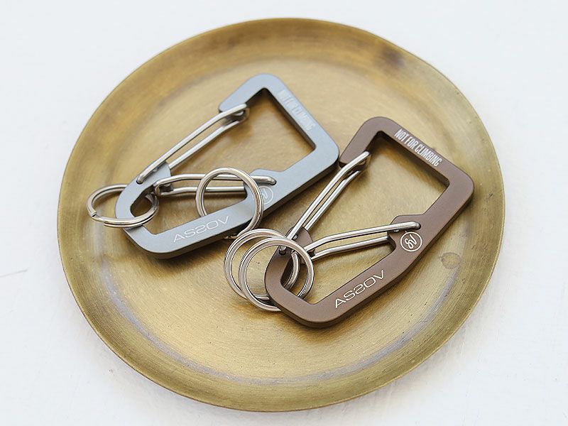 本体にアルミニウム素材を使用し、アルマイト塗装を施した AS2OVオリジナルのダブルフックカラビナです。