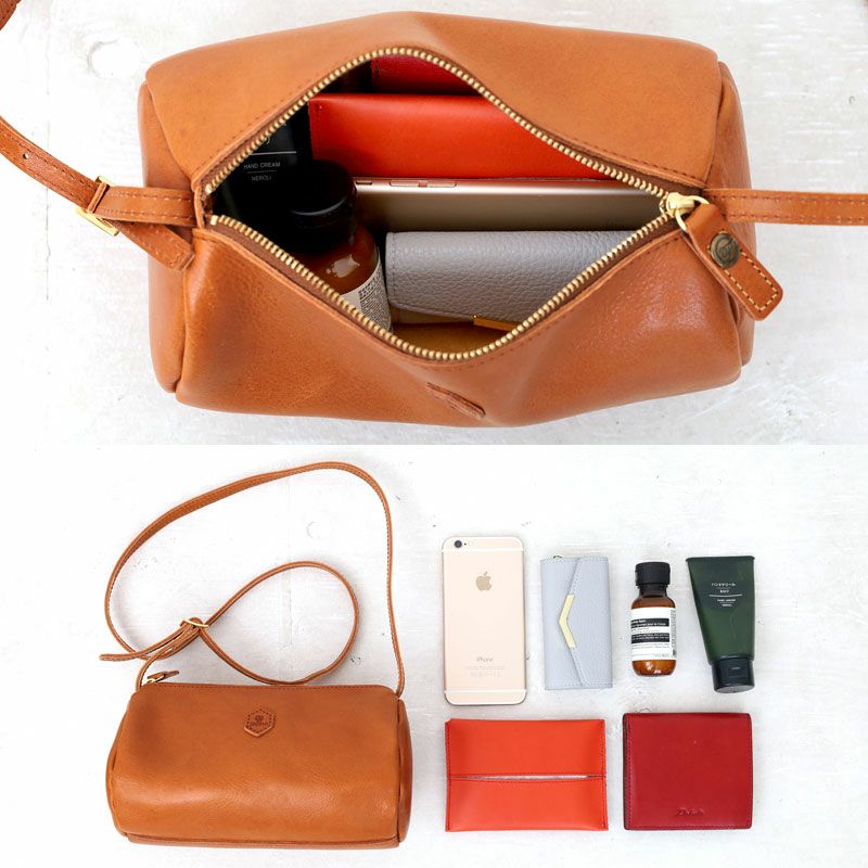 二つ折り財布や500mlペットボトルなどの、お出かけの必需品をコンパクトに持ち運ぶことができ、