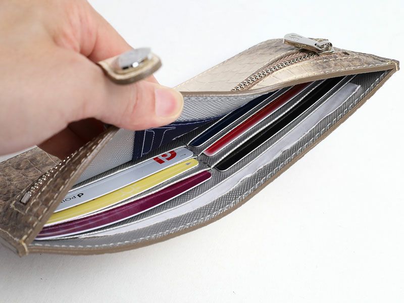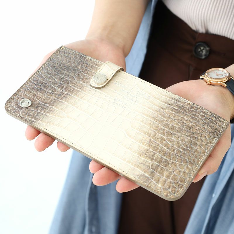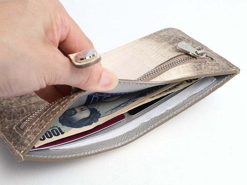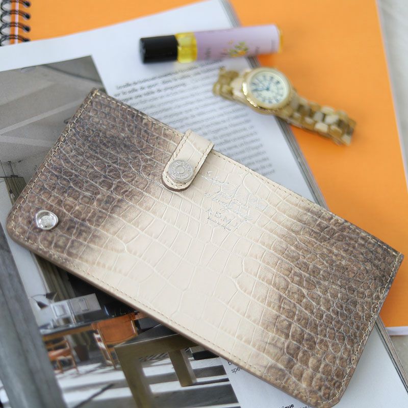 高級感あふれるクロコダイル型押しが特徴の機能性も充実したスリムウォレット。