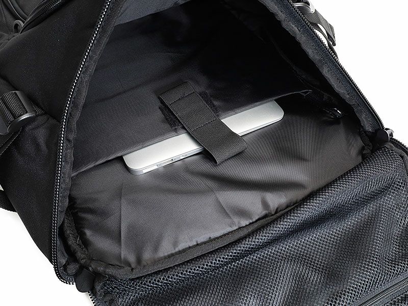 メッシュポケットとノートPCやタブレット収納対応のパッド入りポケットがあります。