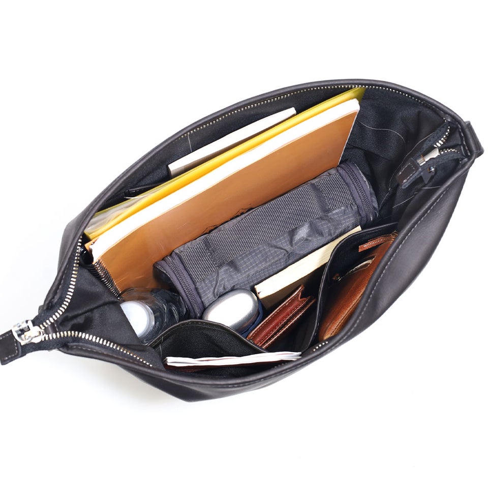 ダブルジップ仕様のトップは大きく開き、中身を一目で確認可能。ファスナーが握りやすい位置に設計されているため、荷物の出し入れがスムーズです。財布やスマートフォンを探す手間を減らし、日常の動作を快適にします。
