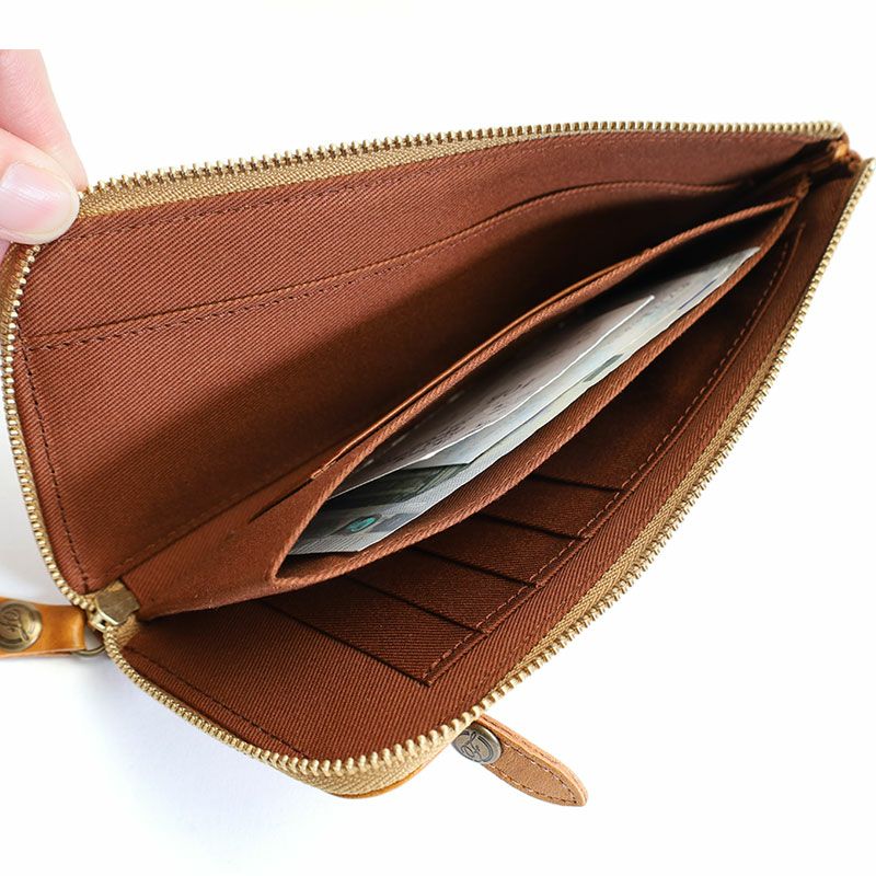 美しい経年変化を楽しめる“ヌメオイルシュリンク”を使用した人気シリーズのスマートなサイズ感のLファスナー長財布です。