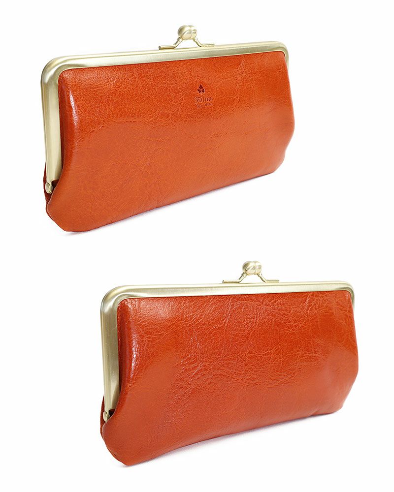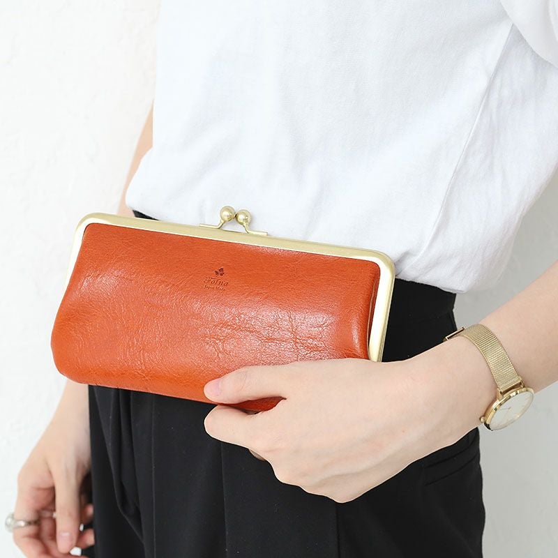 艶やかなイタリア製牛革を使用したがま口タイプの長財布 送料無料