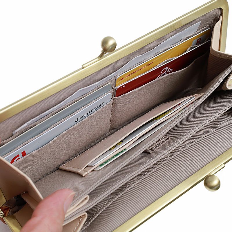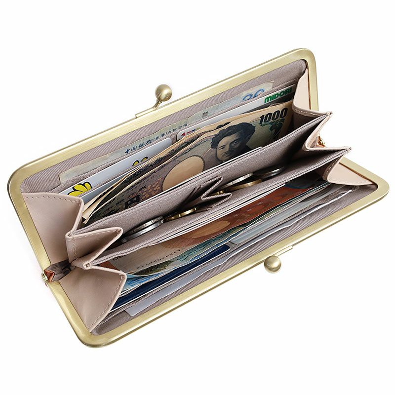 がま口の口金は大きく開き、お財布の中身が一目で分かるのも魅力的です。