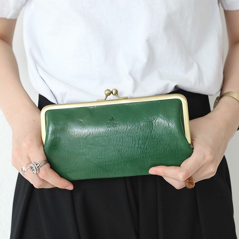 艶やかなイタリア製牛革を使用したがま口タイプの長財布です。