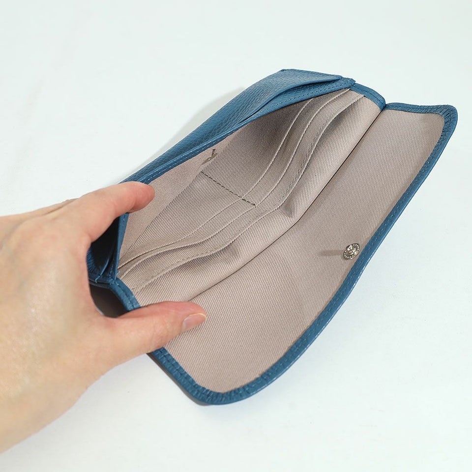 薄くコンパクトなのでバッグの中でかさばらない、マチ無しの長財布。