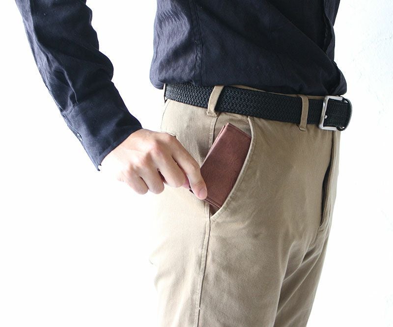 ベジタブルタンニンレザーを使用したミドルウォレット。