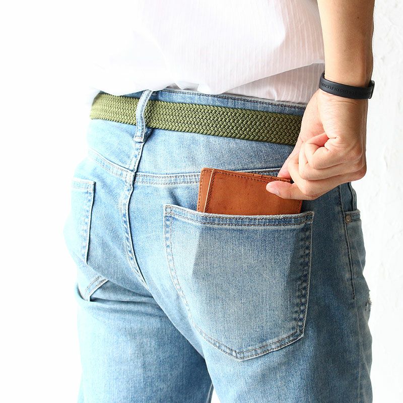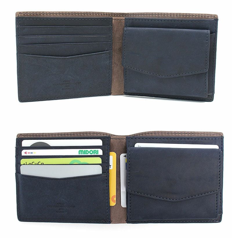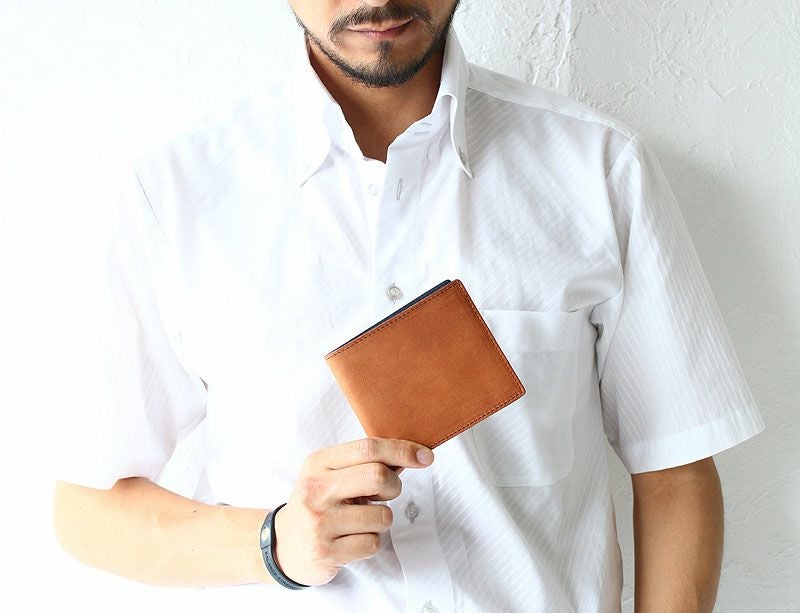 ベジタブルタンニンレザーを使用した二つ折財布。