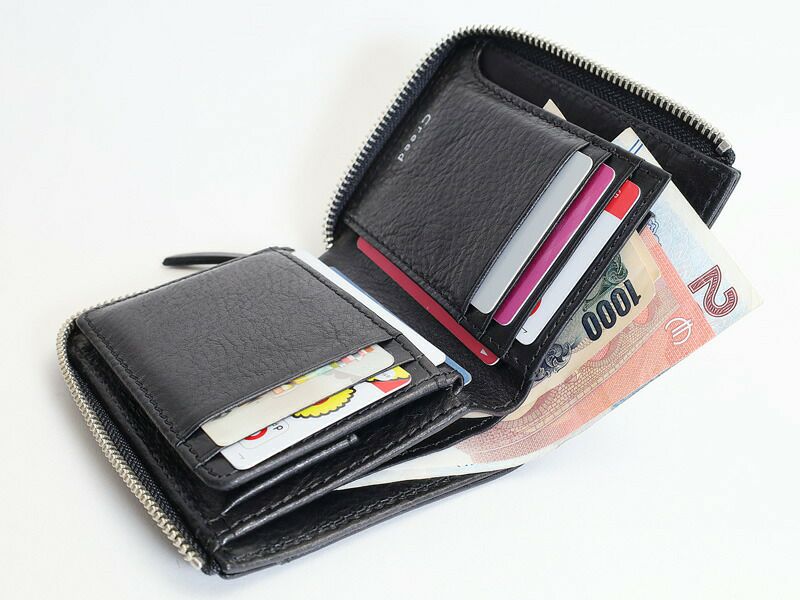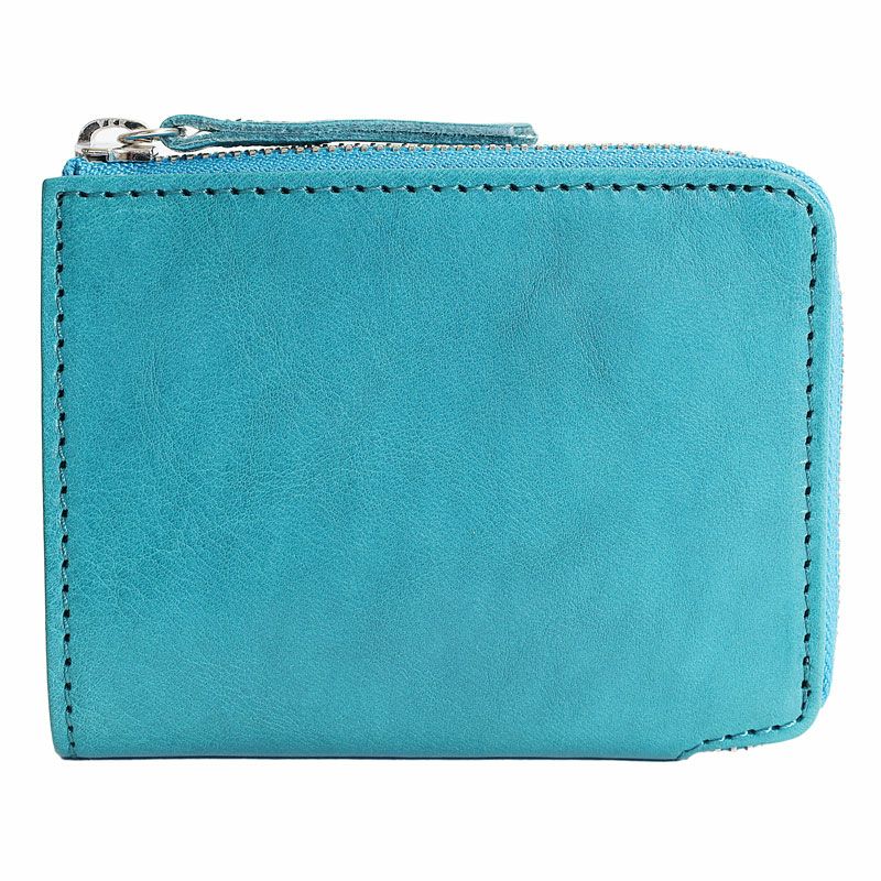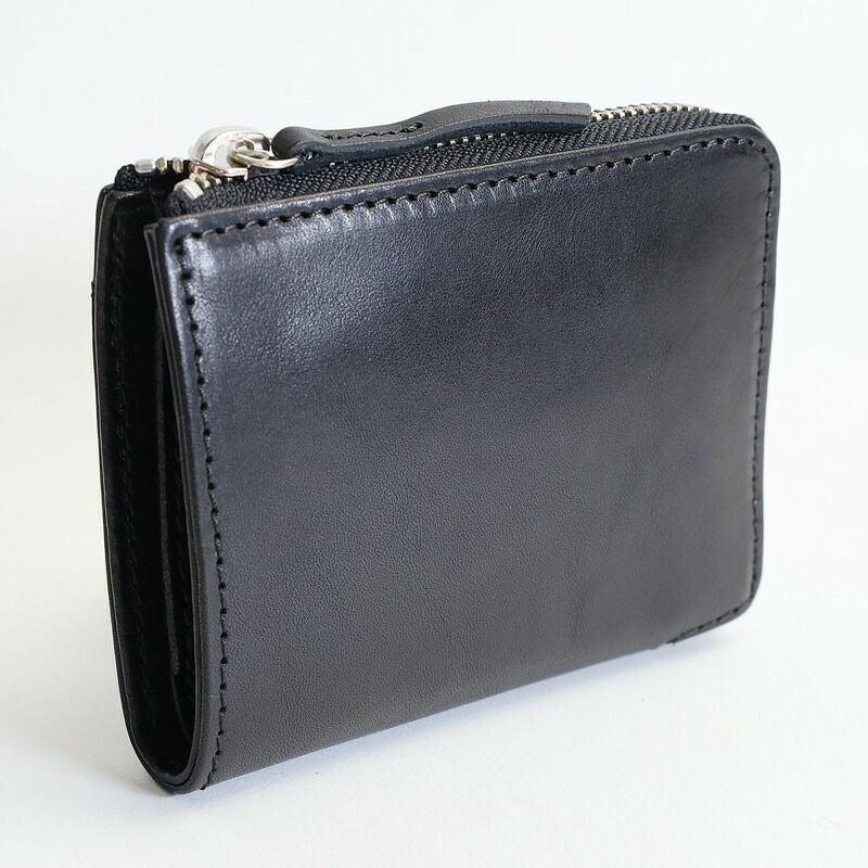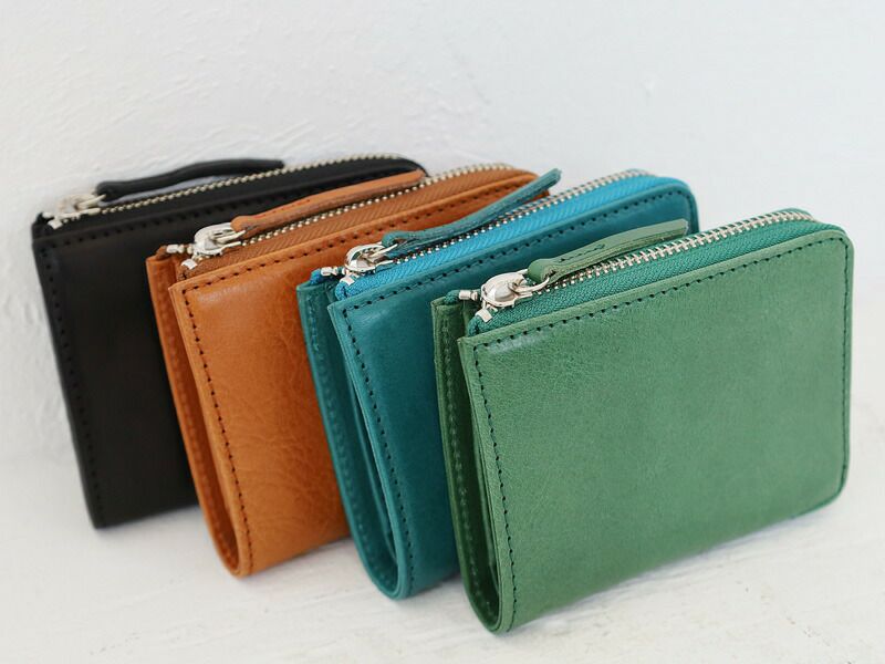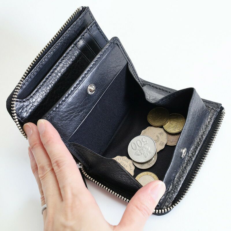 ラウンドファスナーで開閉するL字ジップミドルウォレット。