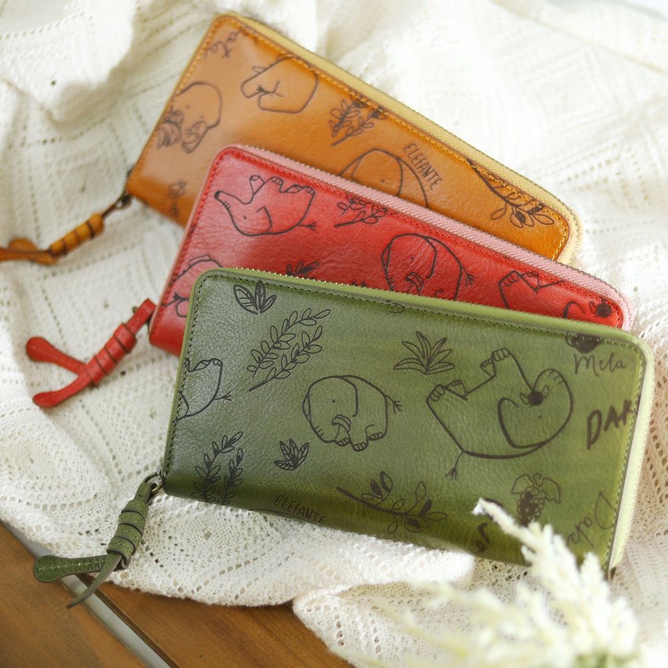 象のモチーフをあしらった独自のデザインは、シンプルな財布に遊び心と個性をプラス。持つ人のセンスを引き立てます。
