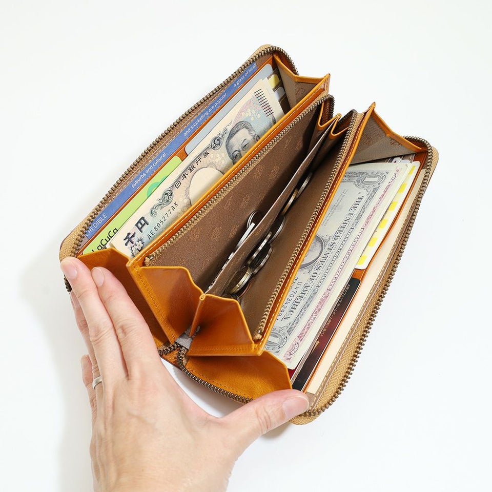 ラウンドファスナー仕様で開閉がスムーズ。内部には16枚のカードを収納でき、整理整頓しやすく実用性も抜群です。