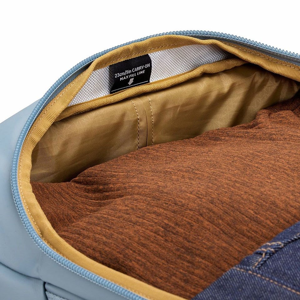 PFCフリーの耐久撥水加工を施した丈夫な900Dファブリックで構成されており、冒険での摩耗や破損に耐え、ギアを外気から保護します。