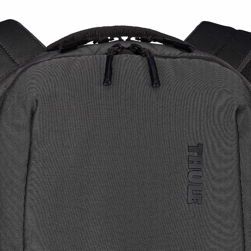 メインコンパートメントのジッパー引き手は、左右の下部にあるウェビングループに差し込むことで、不意の開閉を防ぎ、セキュリティ性を高めます。