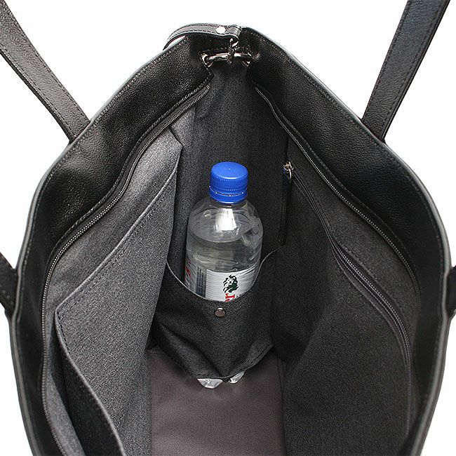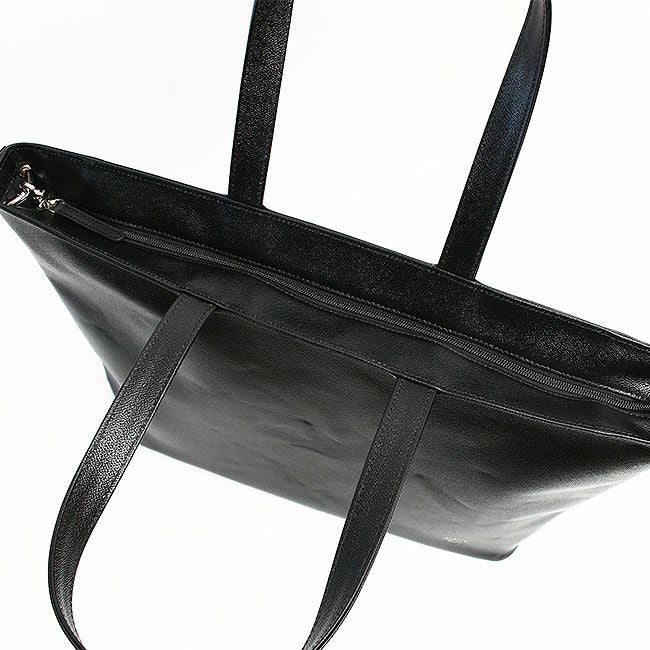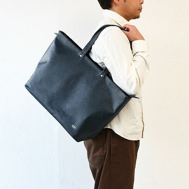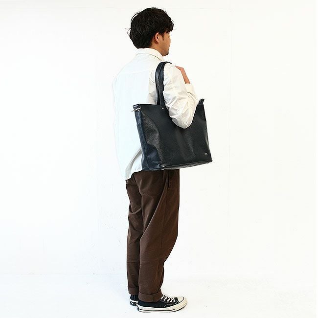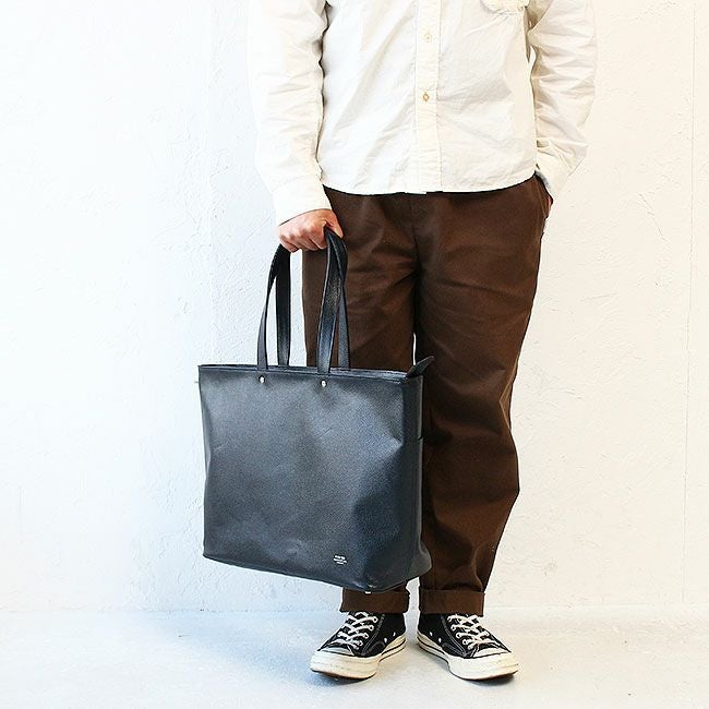 内装にしっかりとしたコットンを使用し、また底板を備えているため、カバンが自立するシルエットとなっています。大きめサイズなので、荷物の多い日の通勤や一泊程度の旅行に最適です。