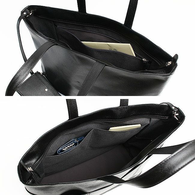 内装にオープンポケット×2、ファスナーポケット×1を備えています。