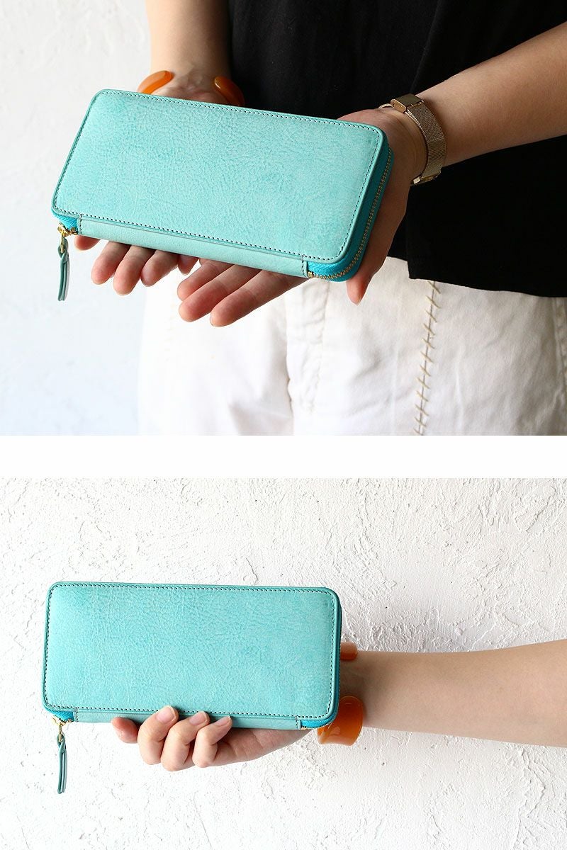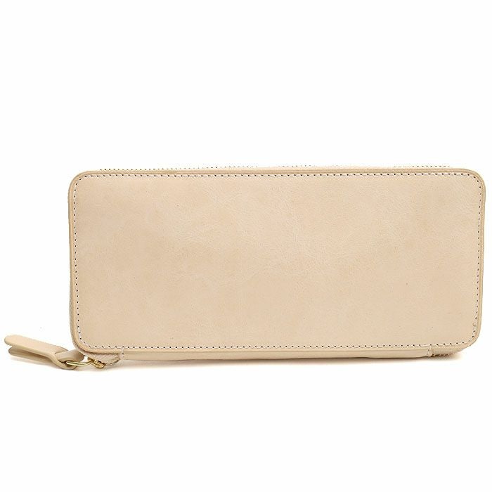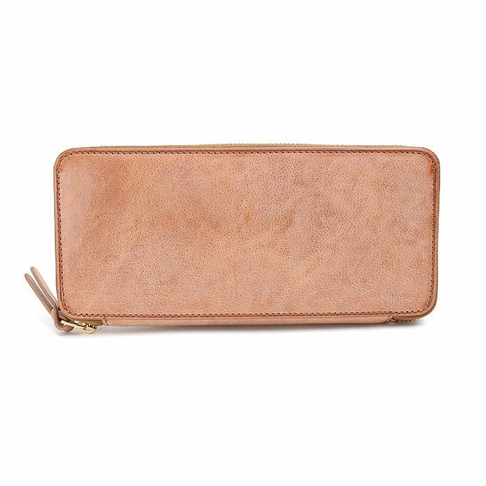 ベジタブルタンニンレザーを使用したラウンドファスナー財布。