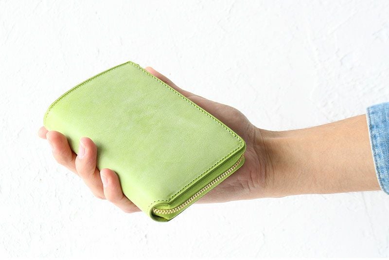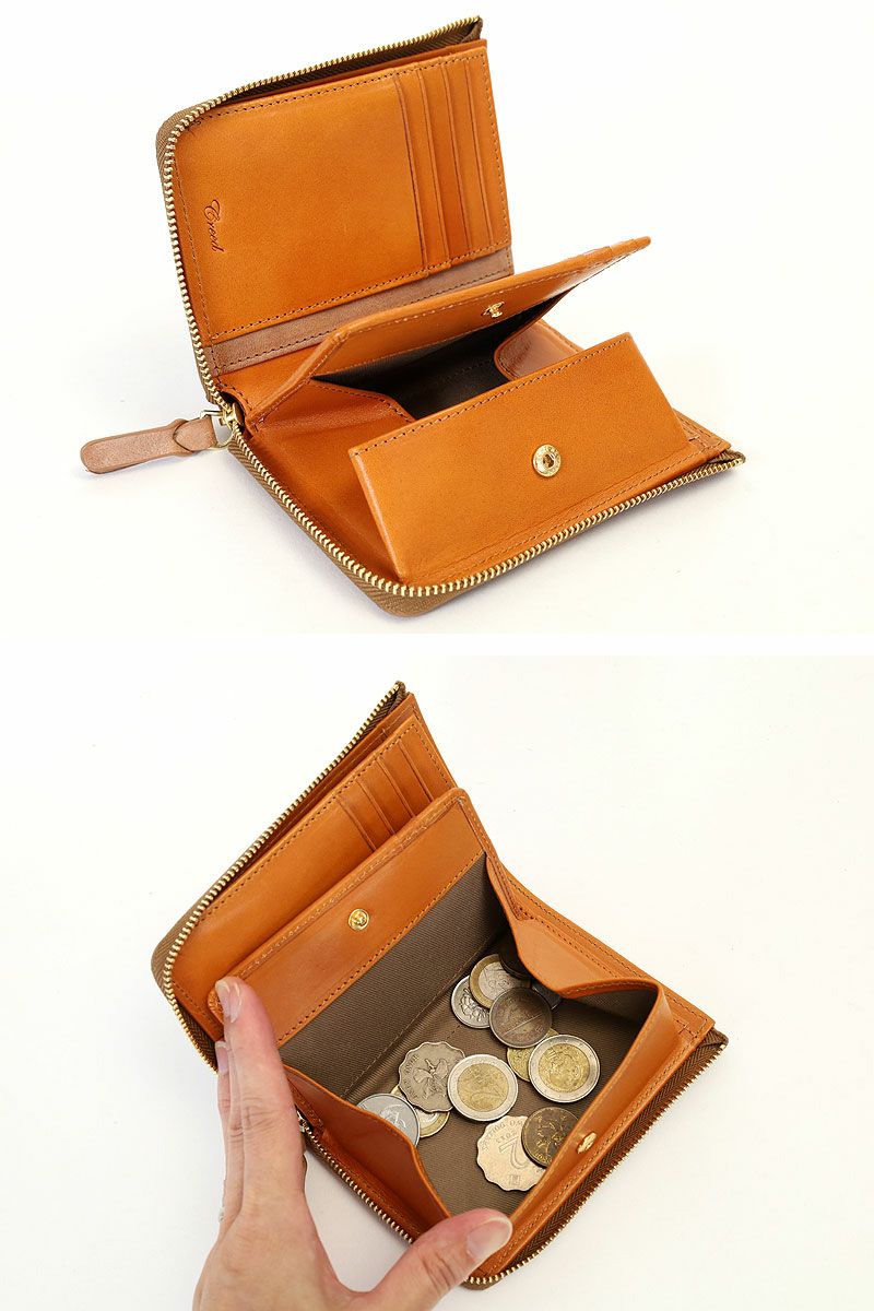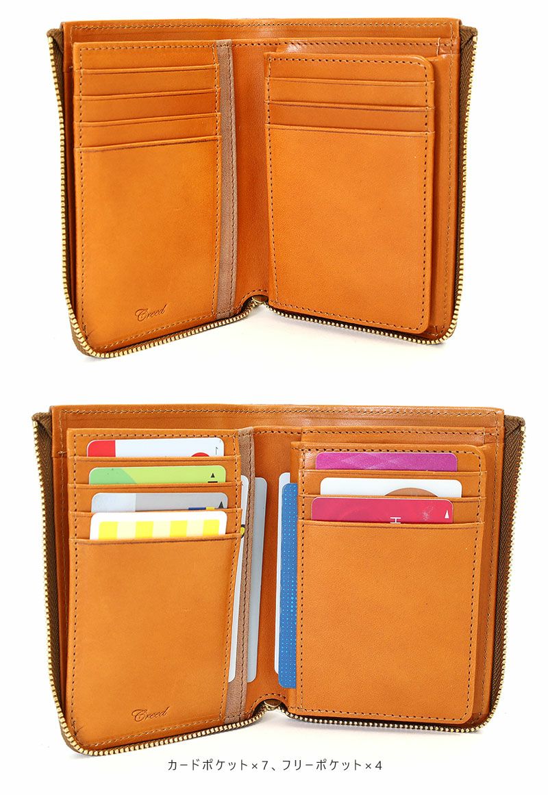 L字ファスナーで開閉するクリード シビラの折財布。