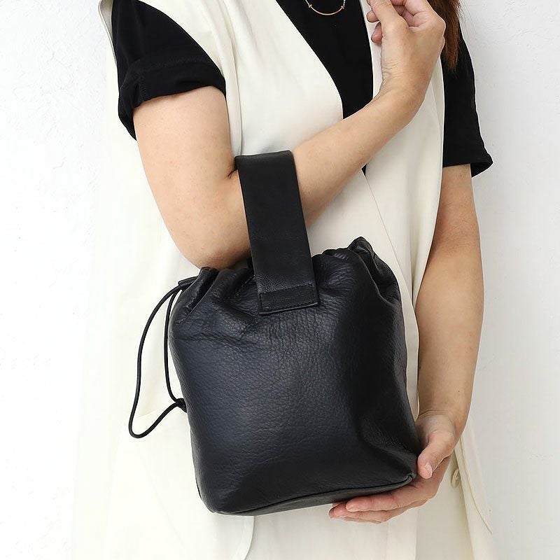 コロンとしたフォルムに幅広のマチでお財布やポーチなどのアイテムがしっかり収納できるので、