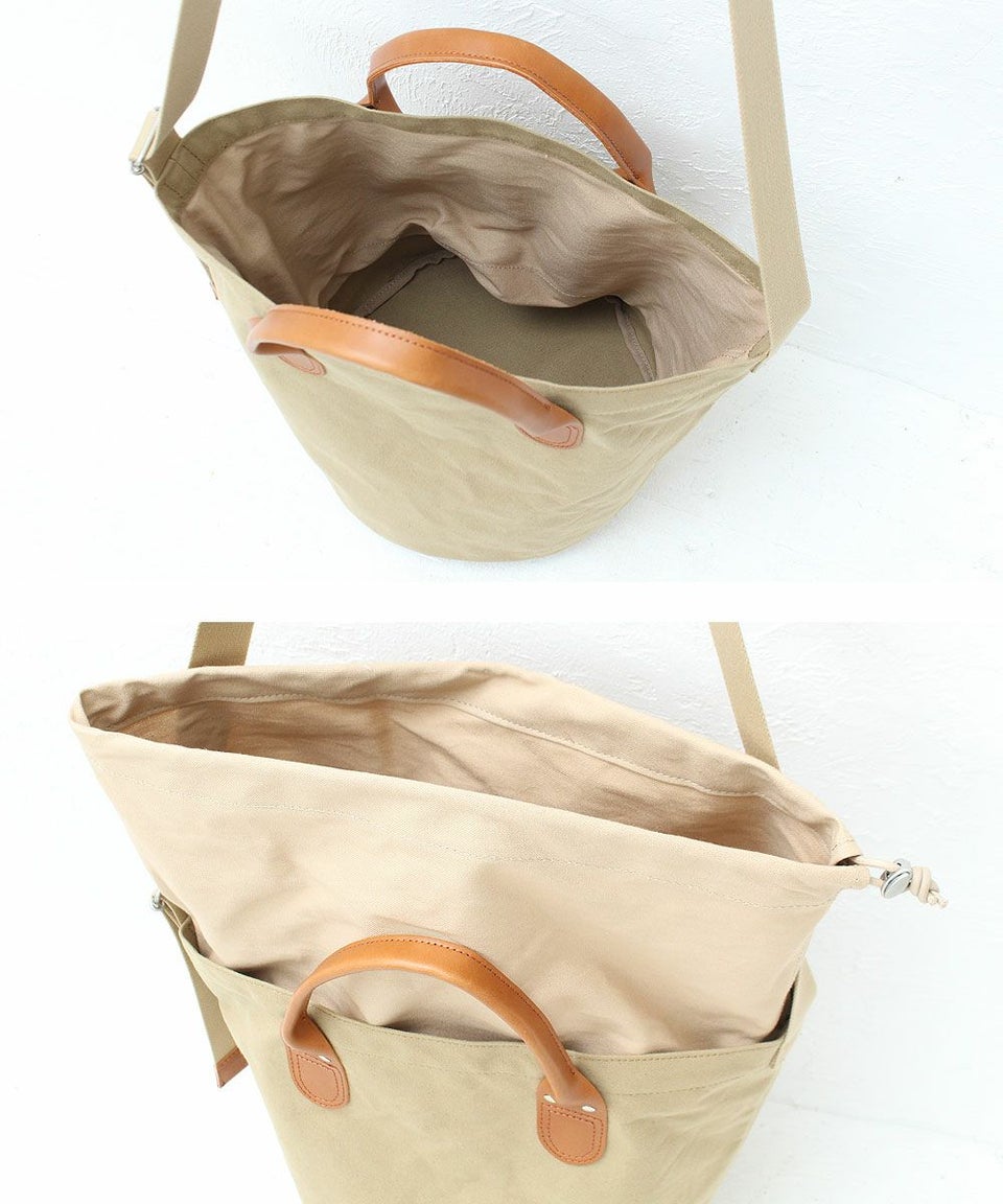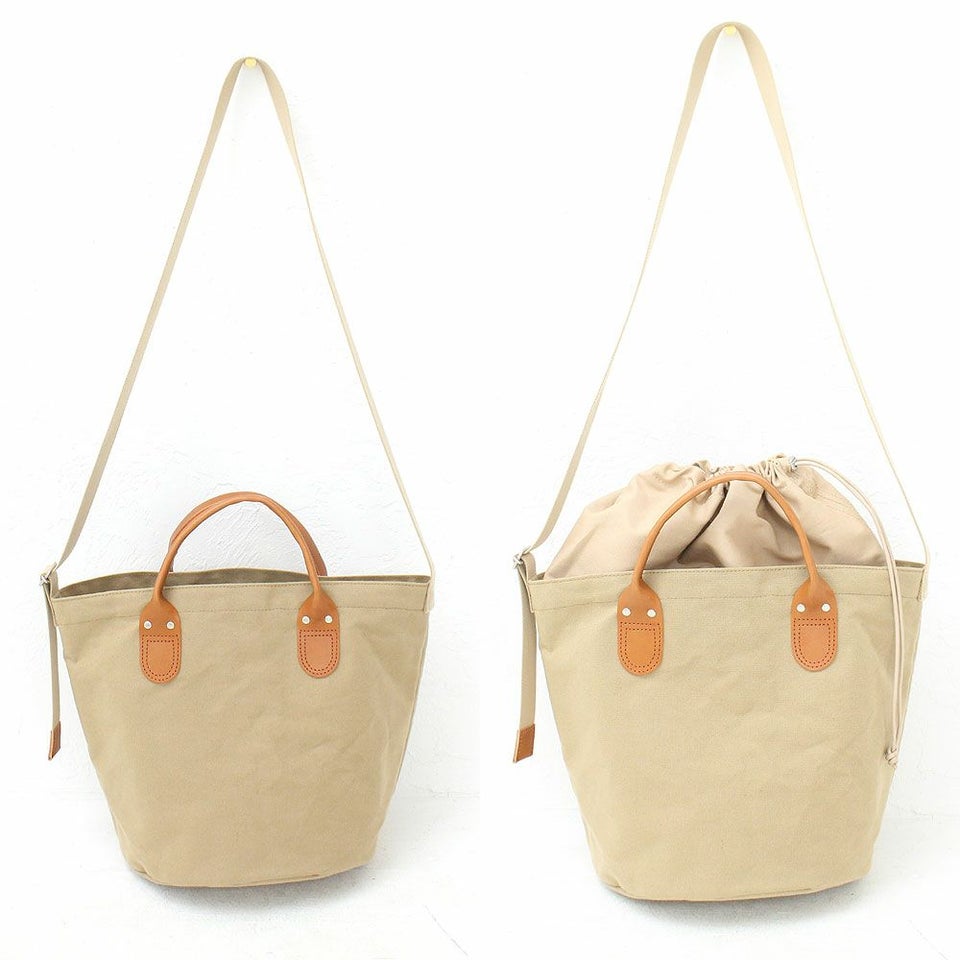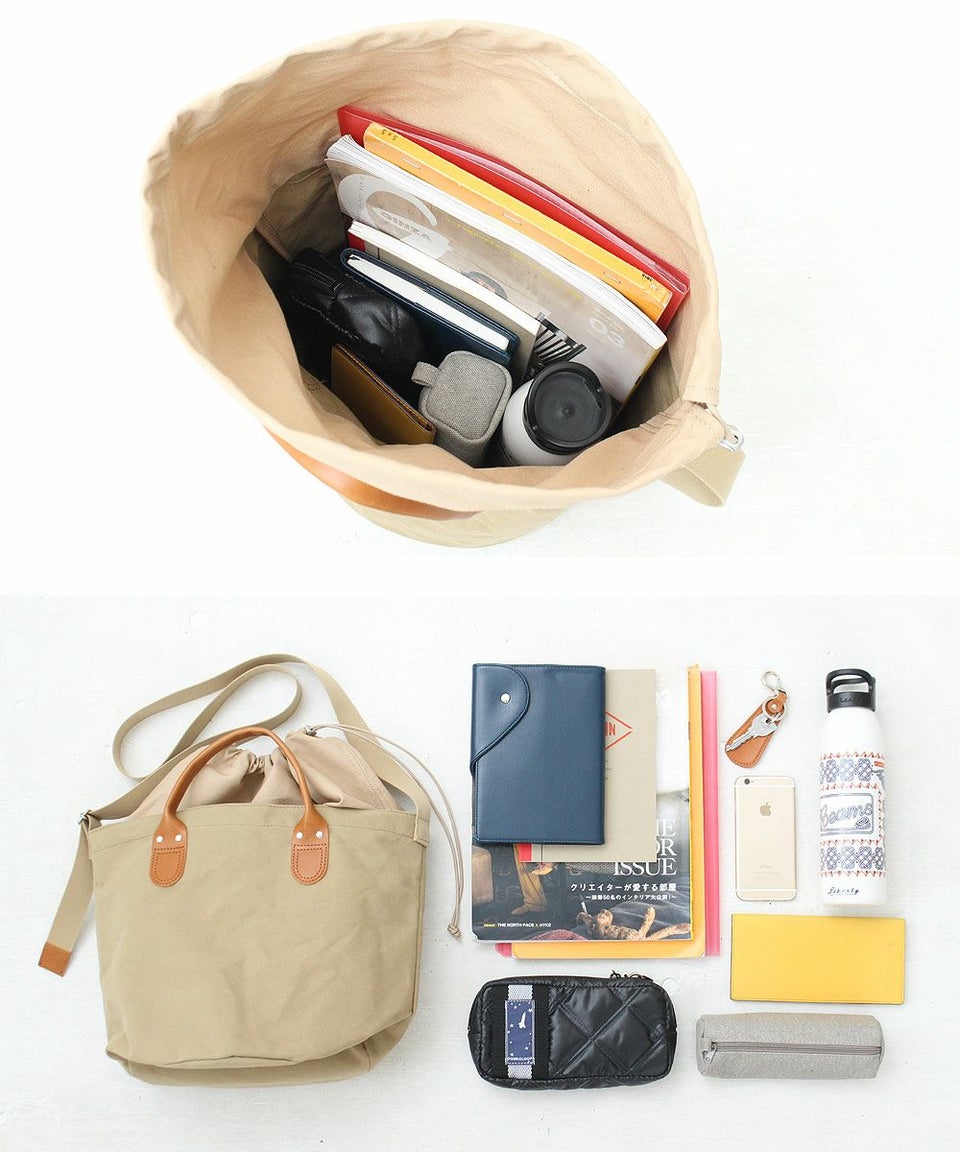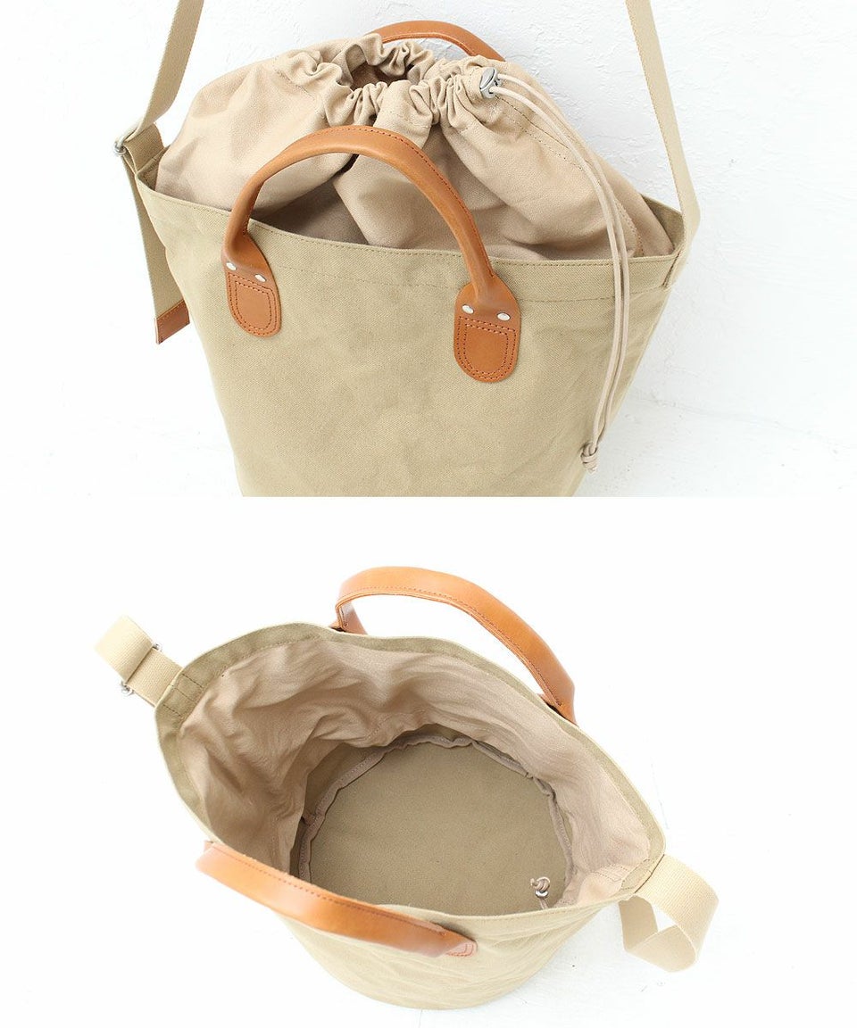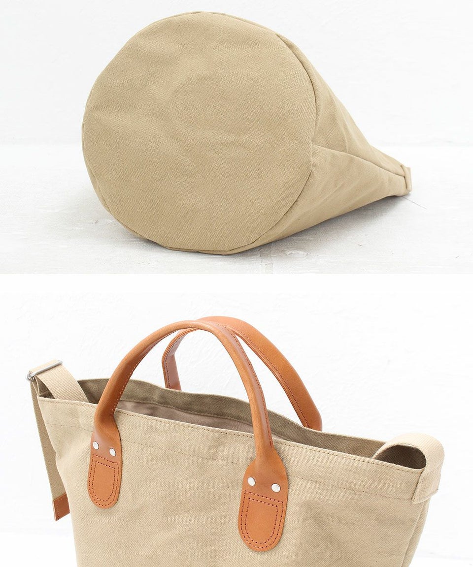 開閉部は生地を中に織り込んでオープン開閉のトートとしても、 天井側にキュッと縛って容量アップできるトートとしてもお使いいただけます。