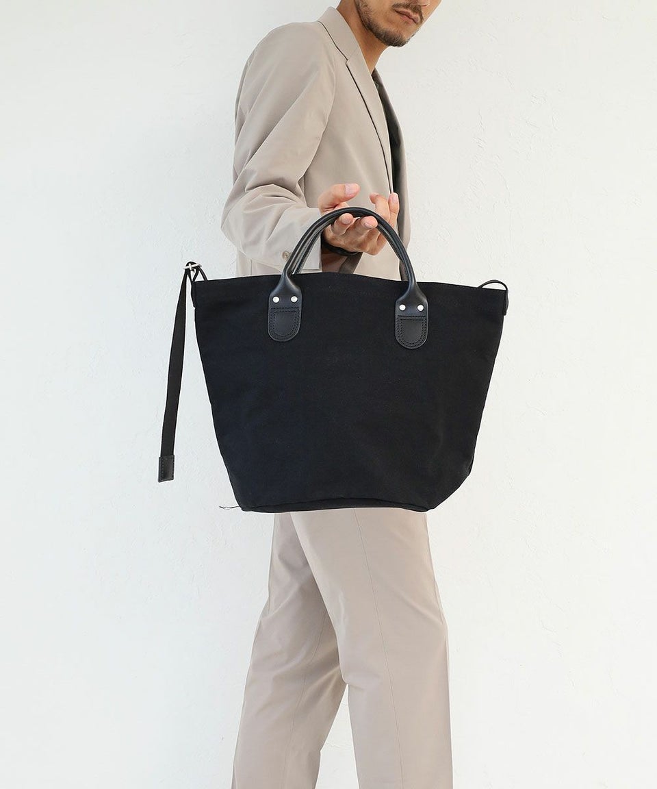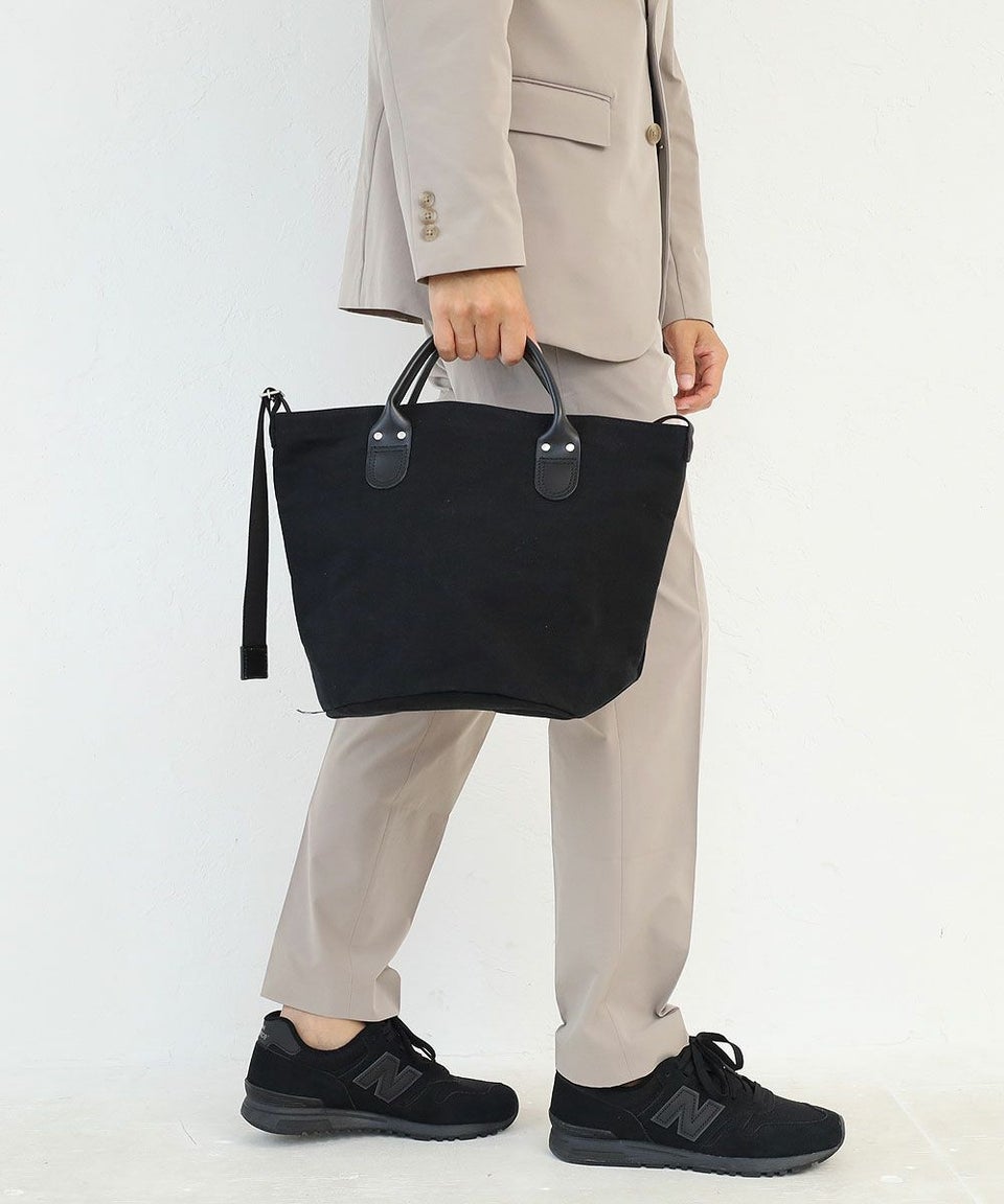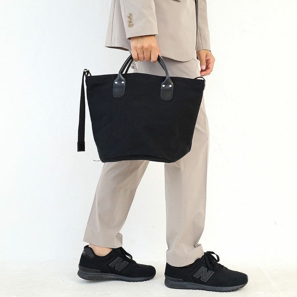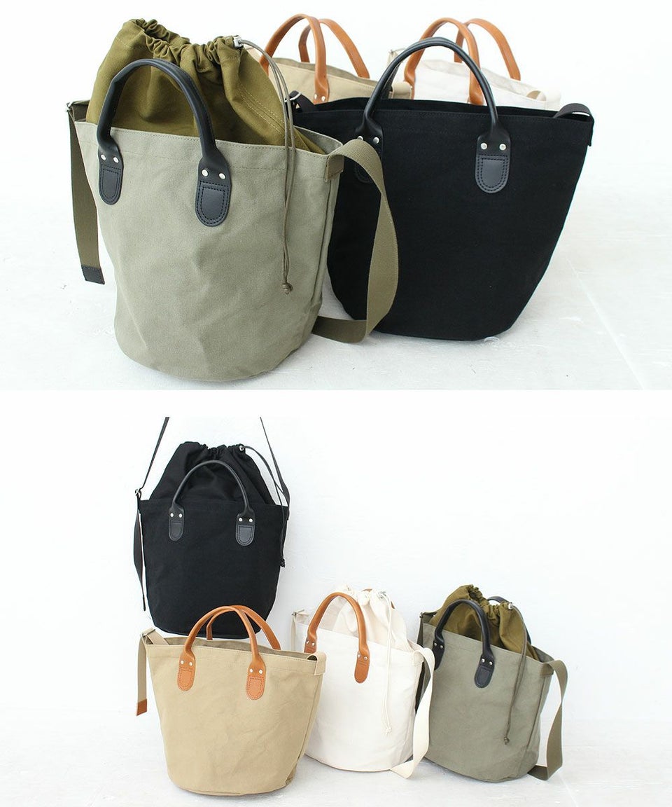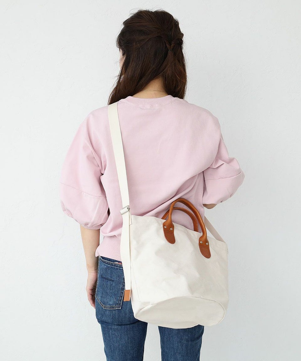 開閉部は生地を中に織り込んでオープン開閉のトートとしても、 天井側にキュッと縛って容量アップできるトートとしてもお使いいただけます。