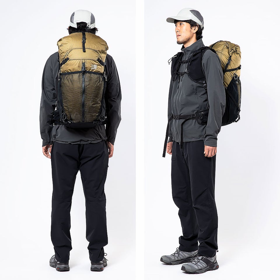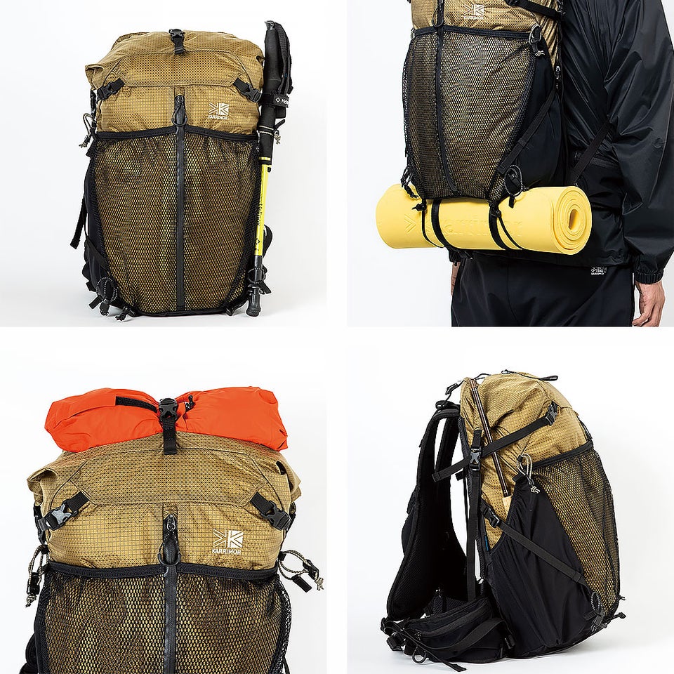 ポールキャリアやボトムバンジーコード、トップコンプレッションを装備。トレッキングポールやマット、ウェアなどを外付けでき、パッキングの自由度が向上します。長物収納にも対応し、アウトドア装備を効率よく携行できます。