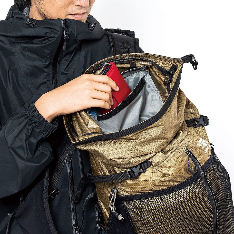 フロントアクセスジッパーにより上部を開けずに内部へアクセス可能。歩行中でも必要な装備を素早く取り出せます。吊りポケットや多彩な収納も備え、荷物整理がしやすく撤収時の作業もスムーズに進められます。