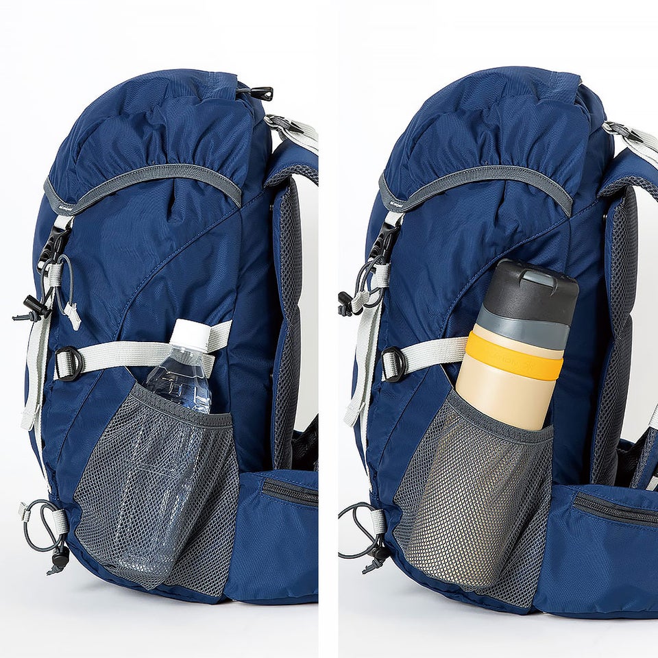 両サイドの大型ボトルポケットは水筒やペットボトルに対応し、歩きながらの水分補給をサポート。ポールキャリアによりトレッキングポールも固定可能です。装備の出し入れをスムーズにし、休憩の手間を減らして快適な登山を実現します。