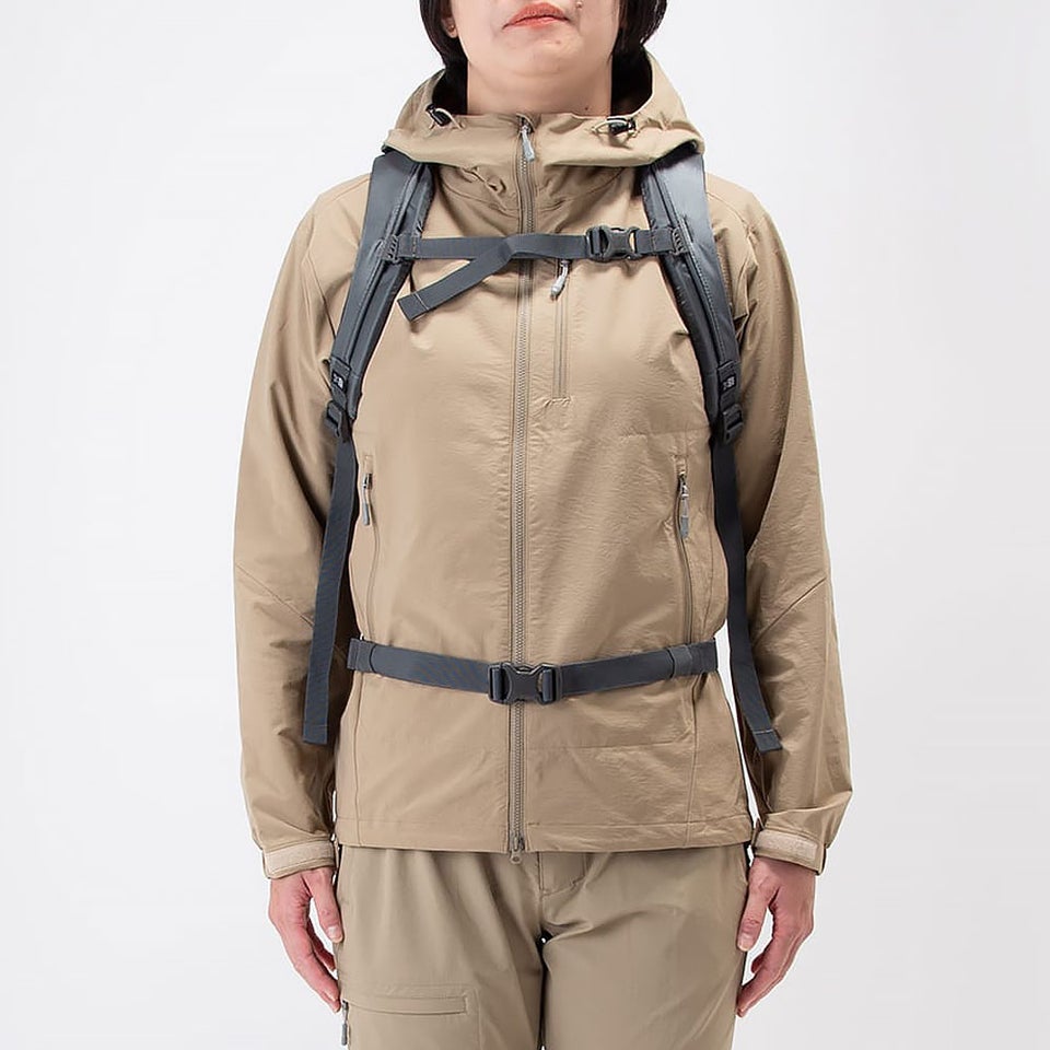 チェストベルトと着脱式ウエストベルトにより体へしっかり固定でき、歩行時の揺れを抑えます。荷物の重心が安定することで肩への負担を軽減し、坂道や段差でも動きやすい設計。用途に応じてウエストベルトを外せば街用としてもすっきり使えます。