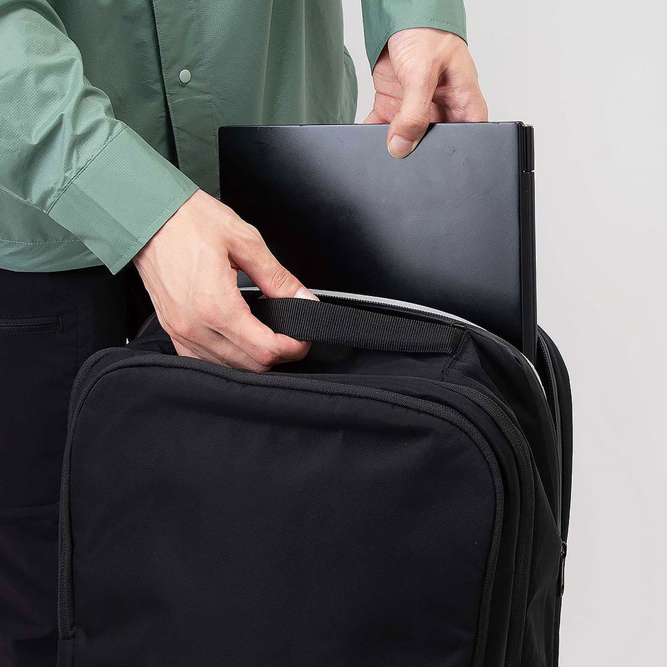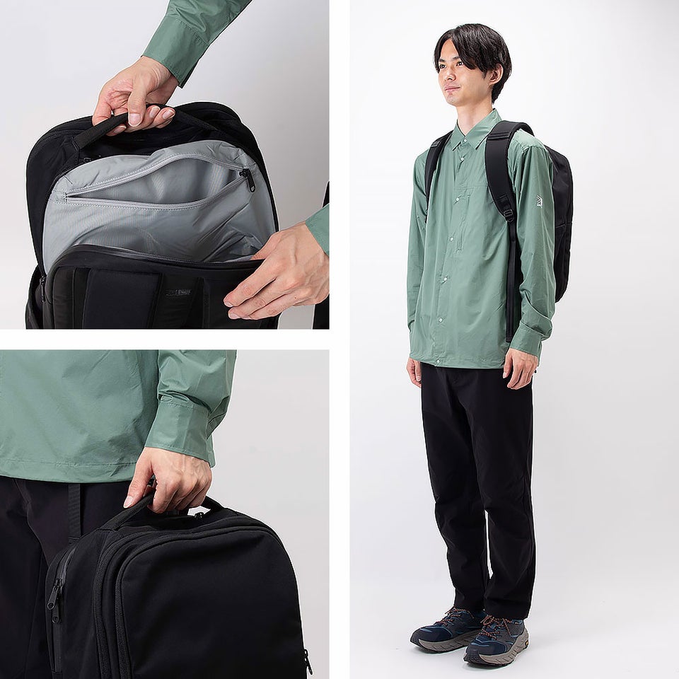 肩と背中の接触面にジャージニット生地を採用し、衣類との摩擦を軽減。長時間背負っても擦れにくく快適な背負い心地を保ちます。重さを分散し体への負担を抑える設計で徒歩移動や通勤でも疲れにくく、日常使いから出張まで快適に使用できます。