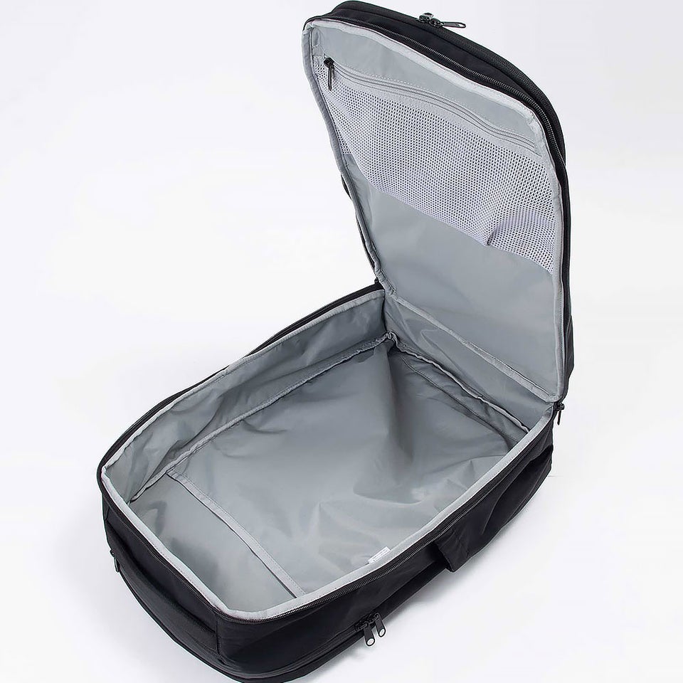 大きく開くメインコンパートメントにより荷物の全体が一目で確認できます。書類やポーチ、着替えなどをまとめて収納でき、内側のメッシュポケットで小物も整理可能。必要な物を探す手間が減り、毎日の通勤や移動時の動作をスムーズにします。容量に余裕があり一泊程度の出張にも対応します。