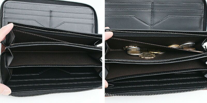 小銭入れはファスナー開閉になっており、中には仕切りもついています。
