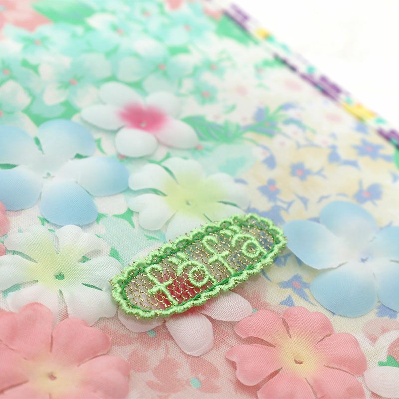ちりばめた造花のデザインが鞄の中まで華やかに♪使い勝手のいいサイズです。