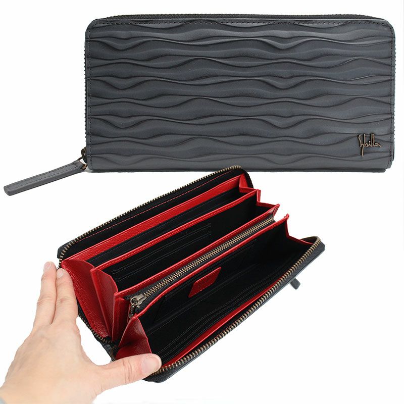 シビラのウェーブ状の型押しが印象的な長財布 送料無料
