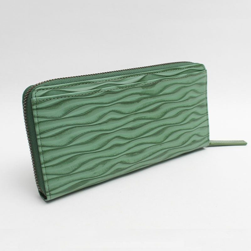 ウェーブ状の型押しが目を引く、ラウンドファスナーの長財布。