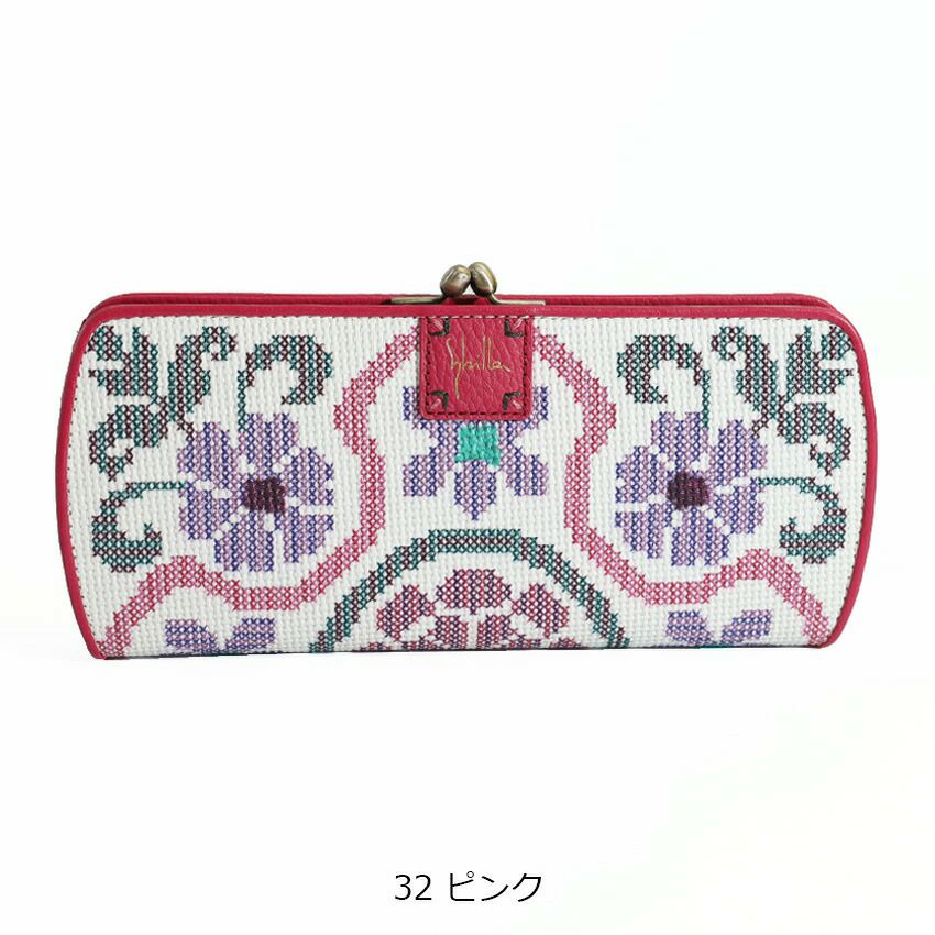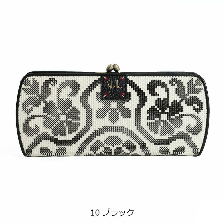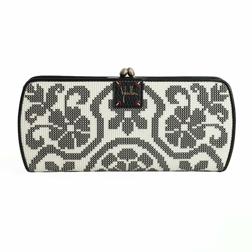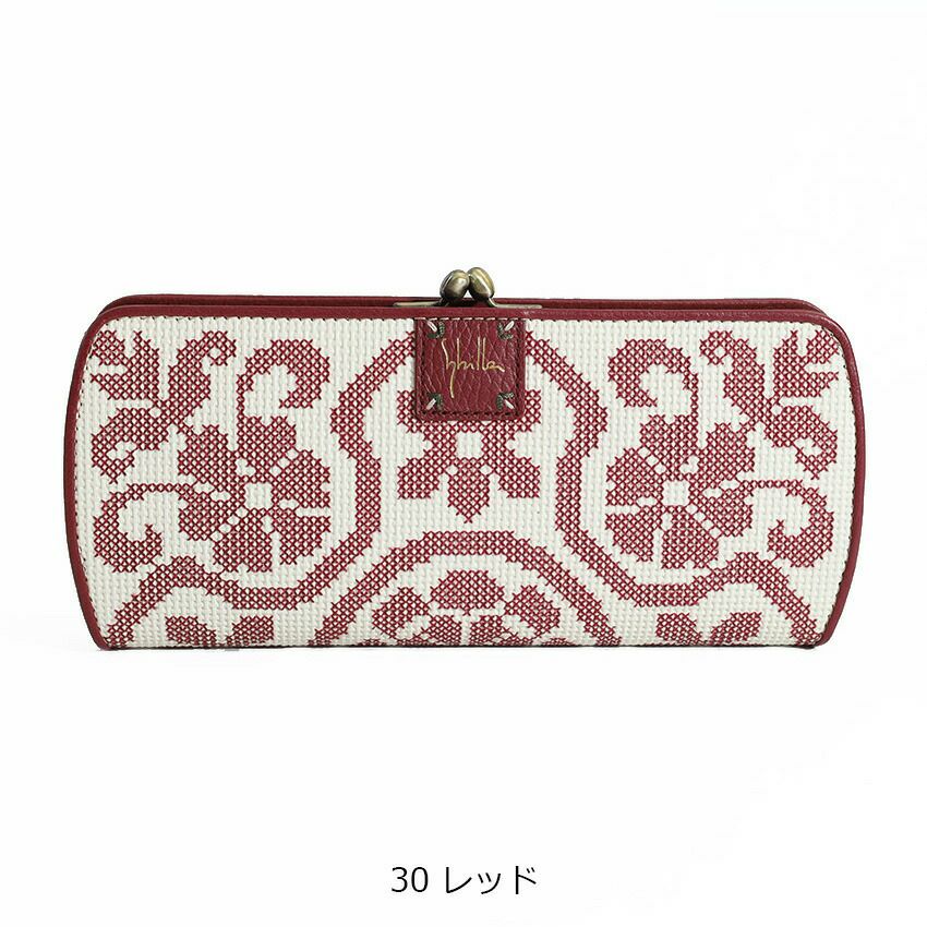 がま口が印象的な長財布。テクニックを駆使し、まるで刺繍の様なデザインを型押しで表現しています。