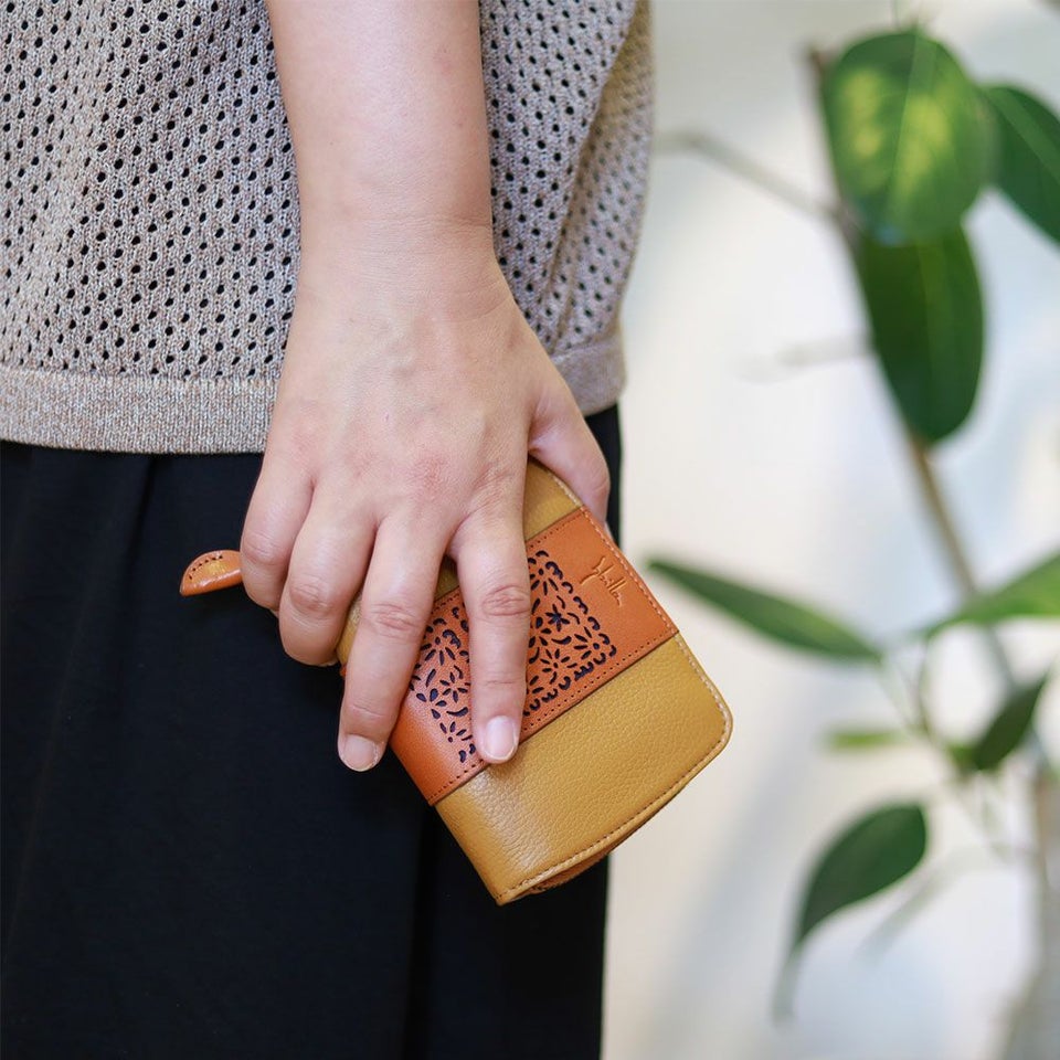 上品デザインと驚きの収納力を備えた二つ折り財布