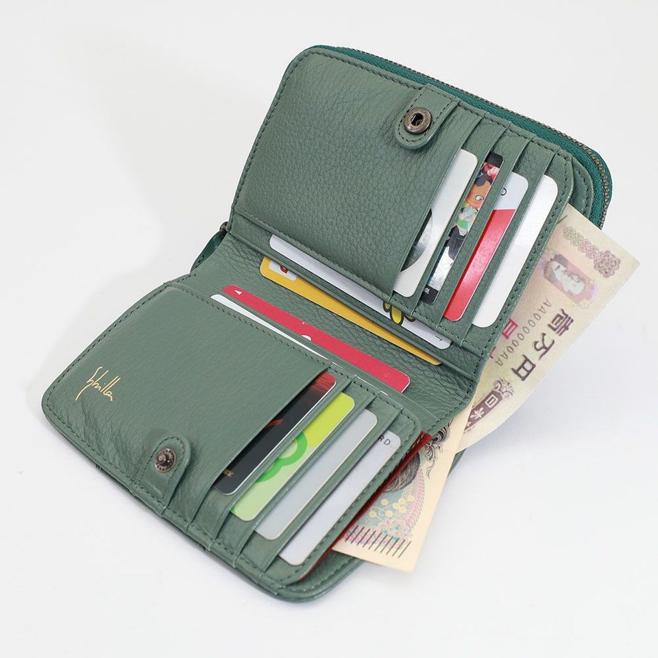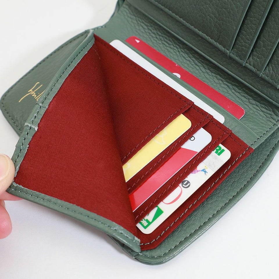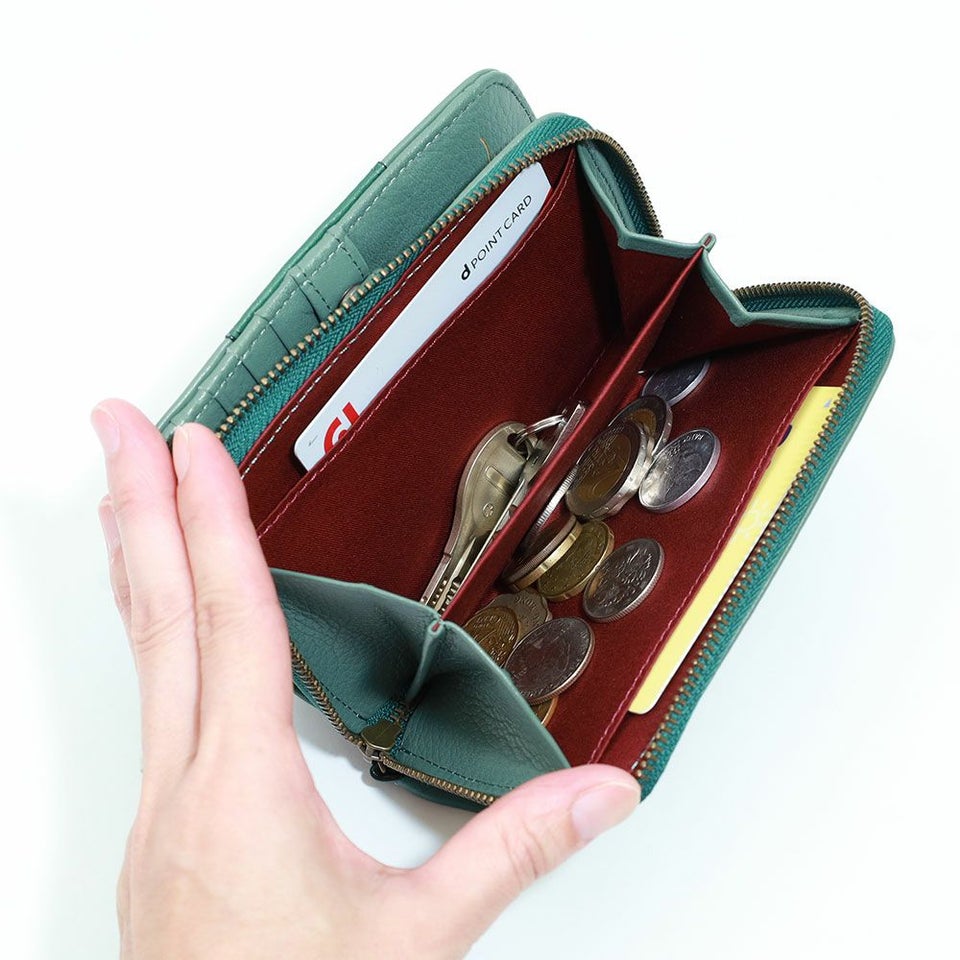カード入れは11ヶ所、さらに内外に複数のポケットを配置。見た目はコンパクトながら、日常使いに必要なカードやレシートなどを余裕で収納できます。整理整頓しやすく使い勝手抜群です。