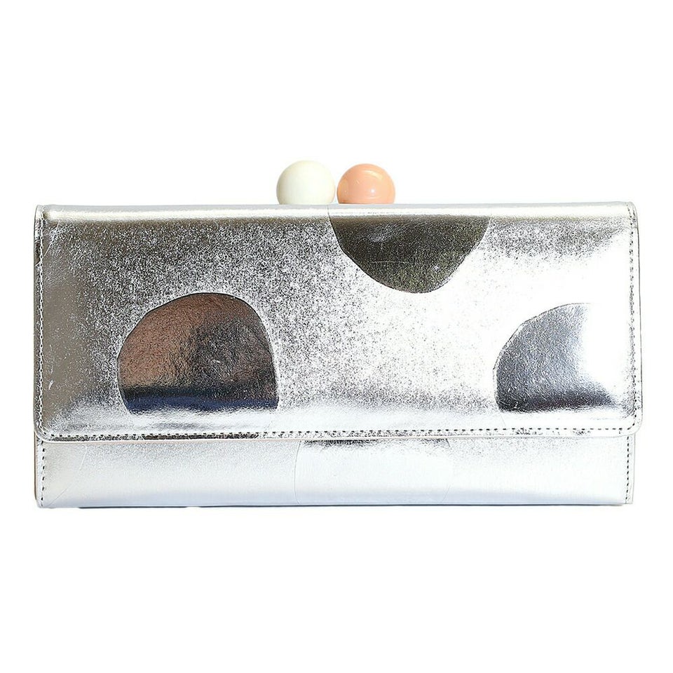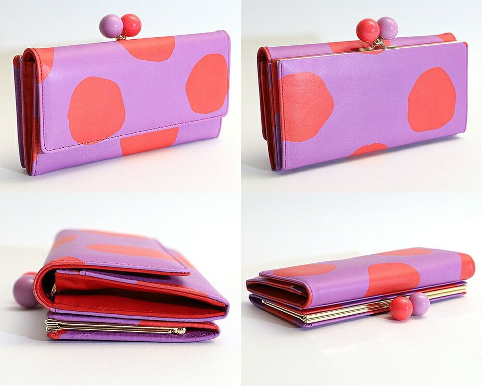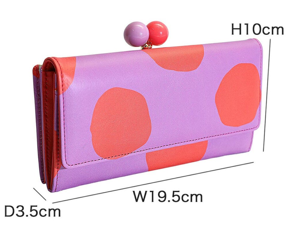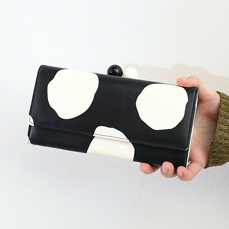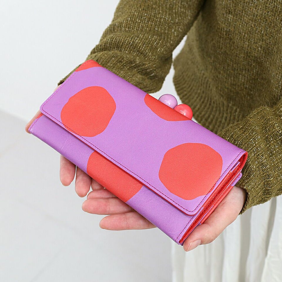 大きな手描きドットがランダムに配された「ズームドット」シリーズのがま口長財布。