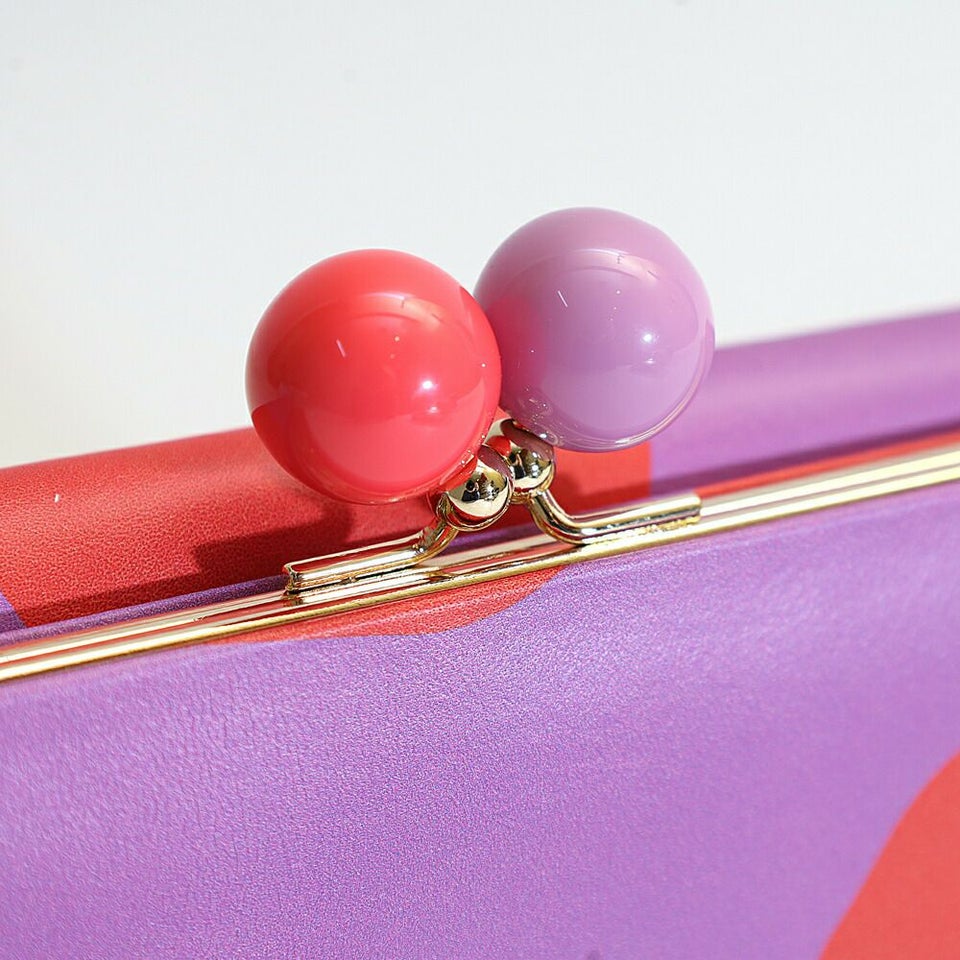 持っているだけで気分が上がるデザインと、飴玉みたいに丸くてかわいい金具もポイントです。