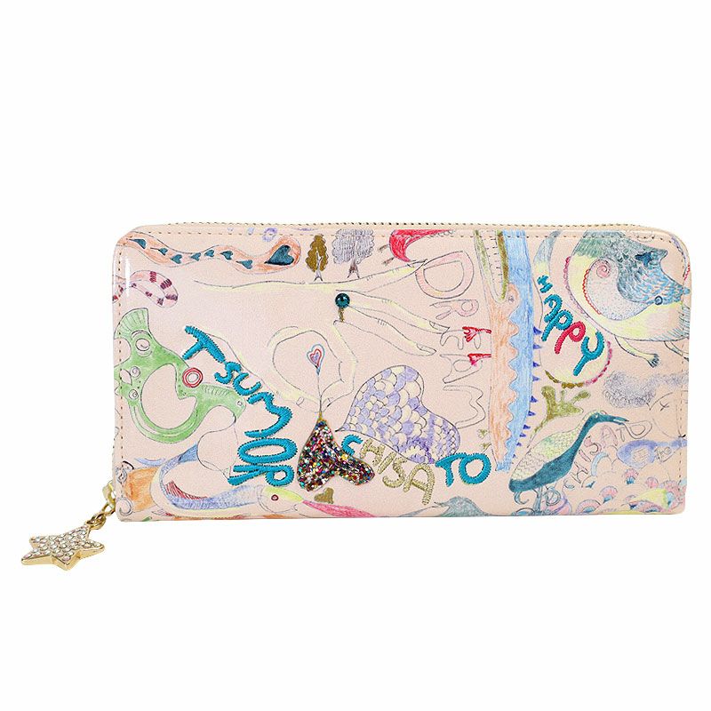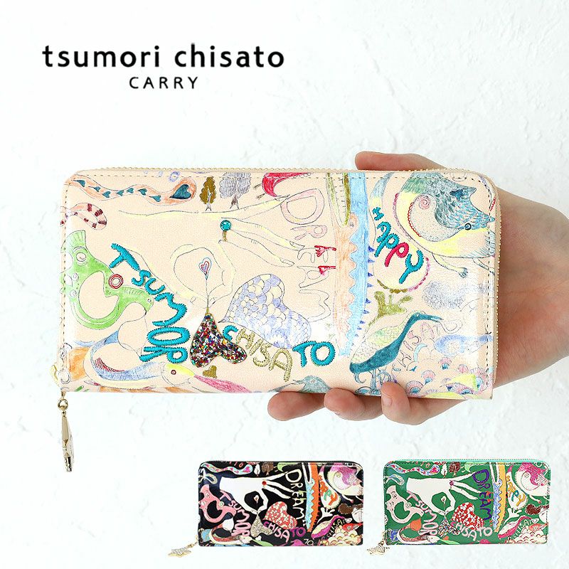 ツモリチサト正規取扱店 幸せなモノやコトが散りばめられたかわいいラウンドファスナー長財布 tsumori chisato CARRY 送料無料