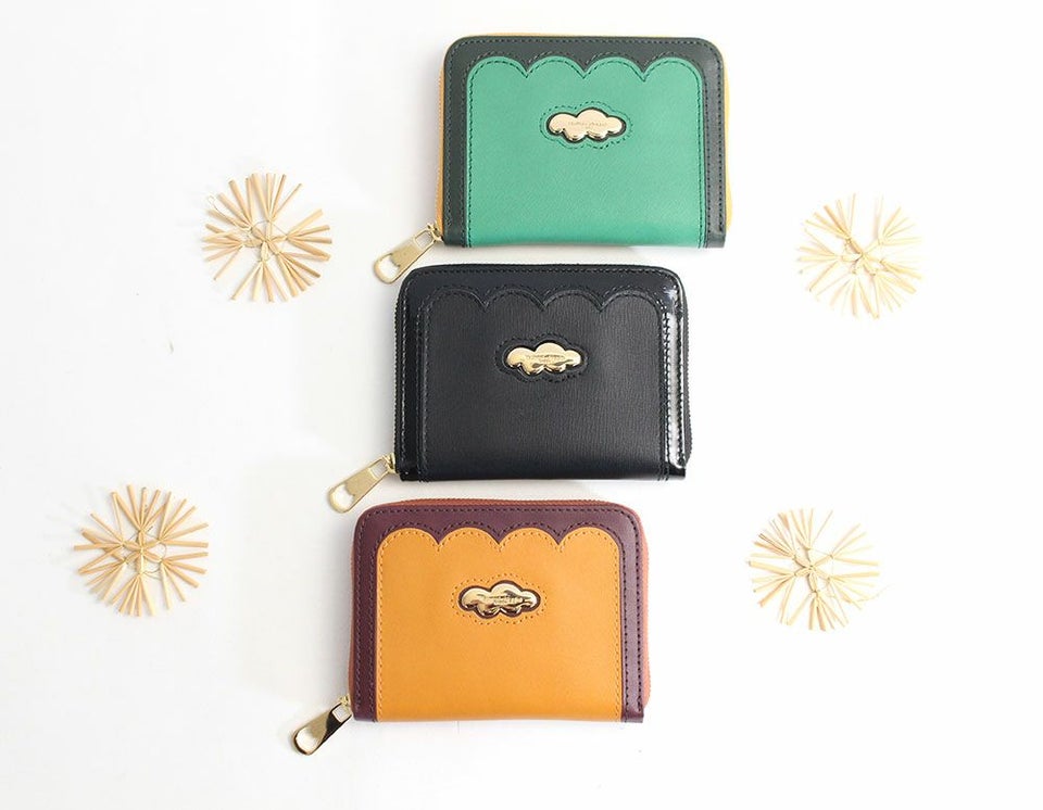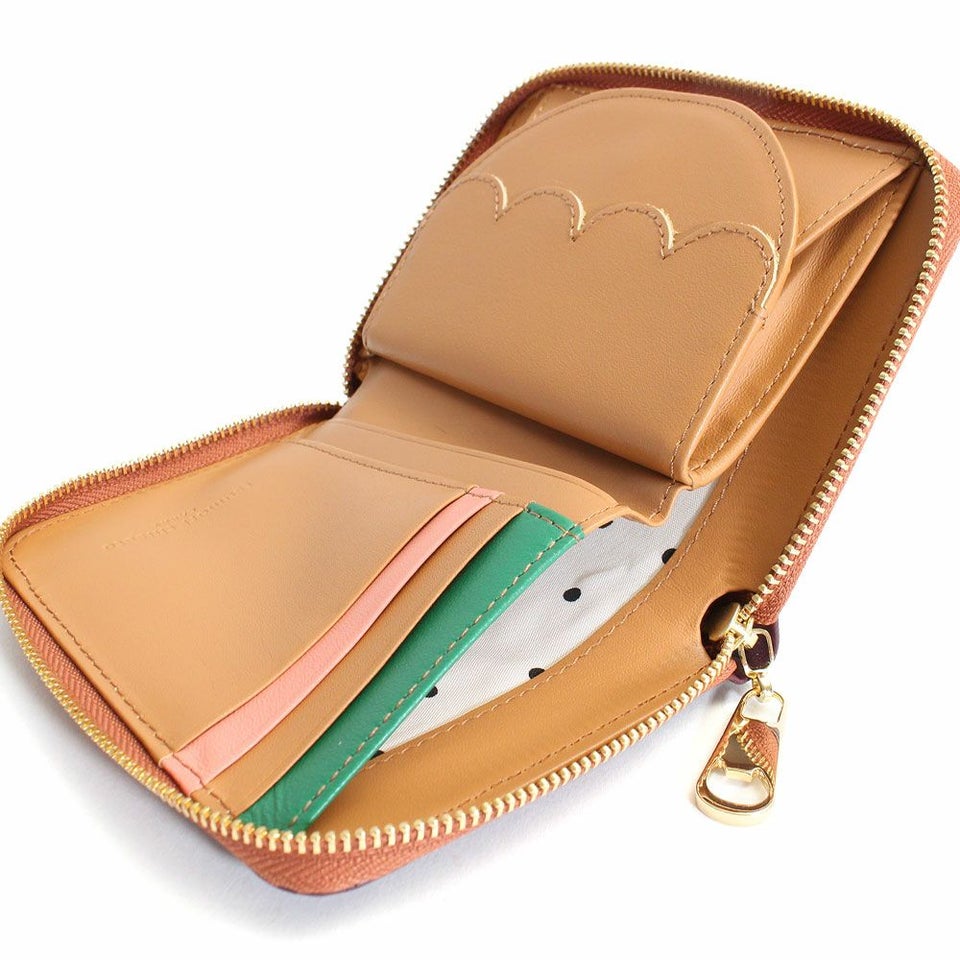 レトロなカラーとフリルのような可愛らしいスカラップ(ホタテ貝)デザインのお財布