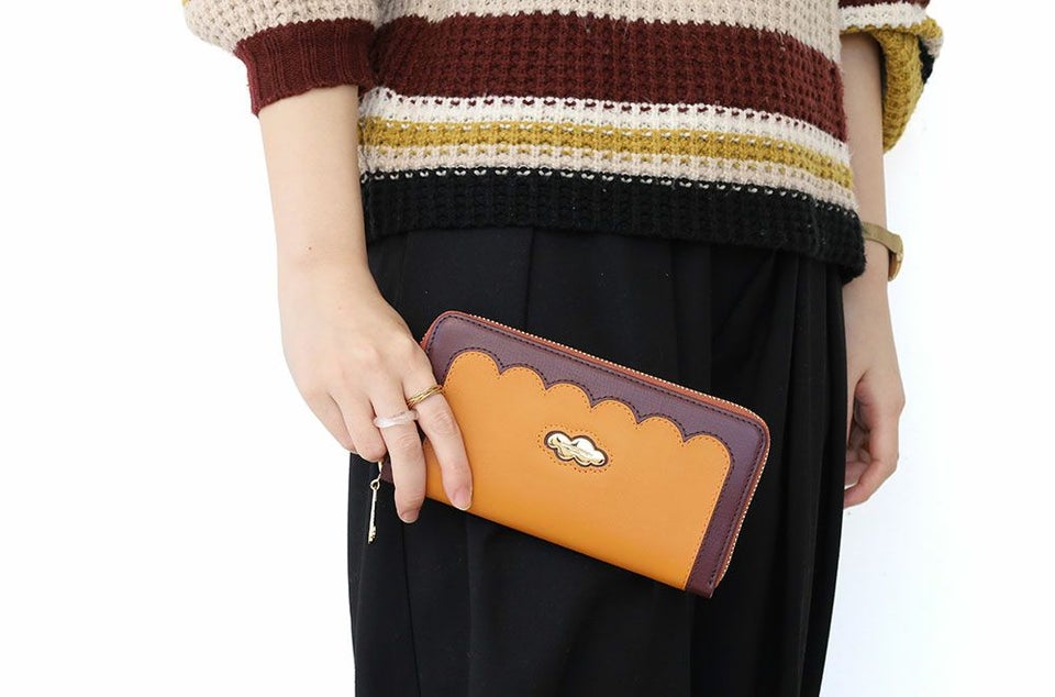 レトロなカラーとフリルのような可愛らしいスカラップ(ホタテ貝)デザインのお財布