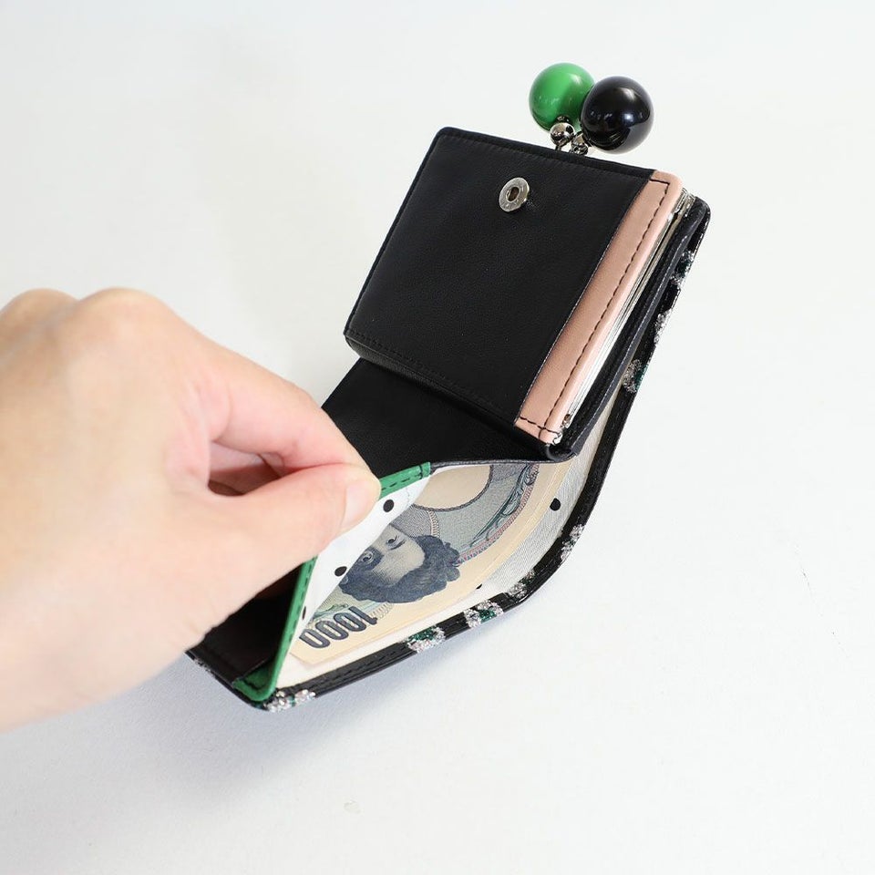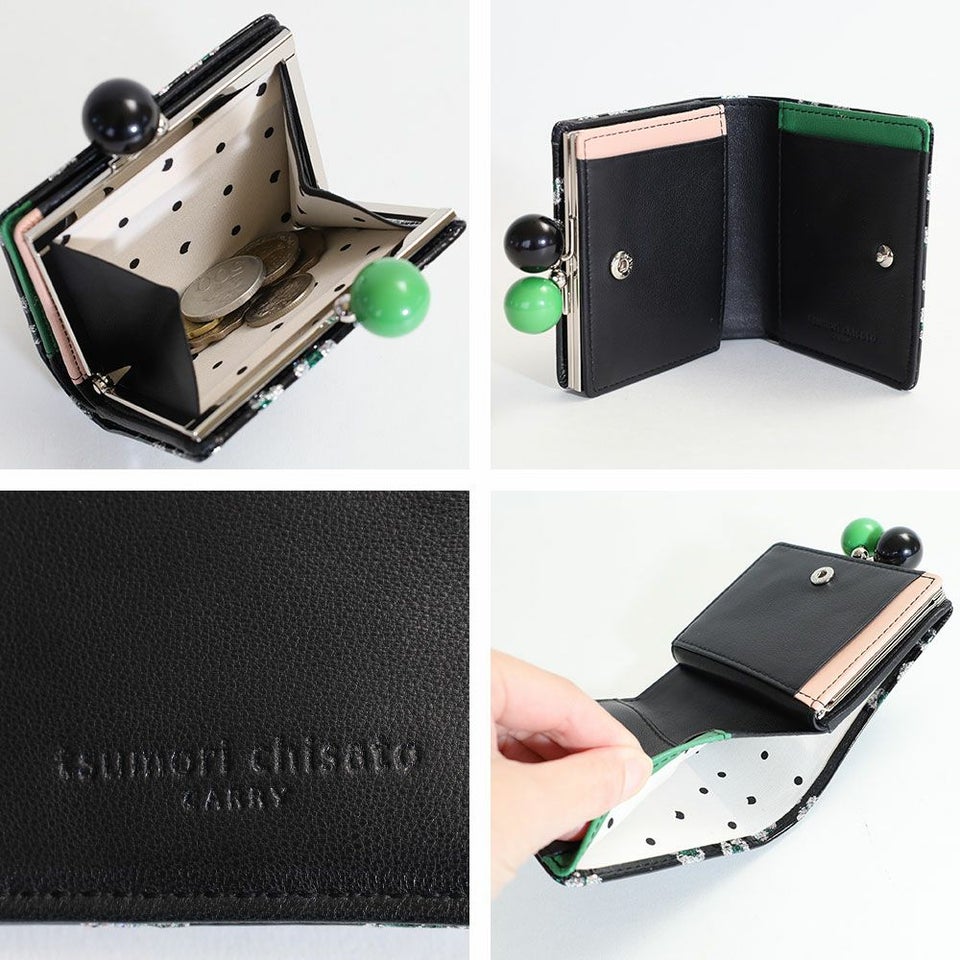 ツモリチサト がま口二つ折り財布 グリッターフラワー