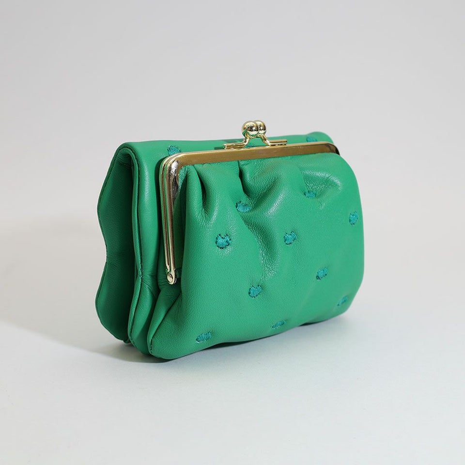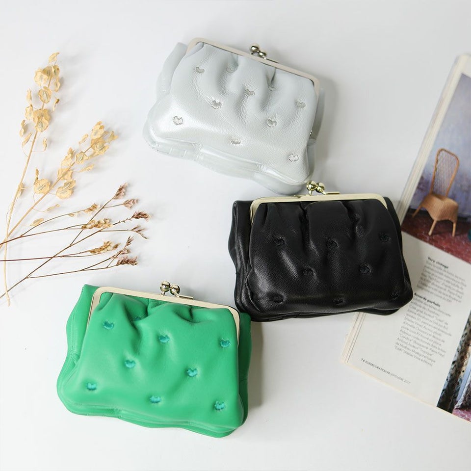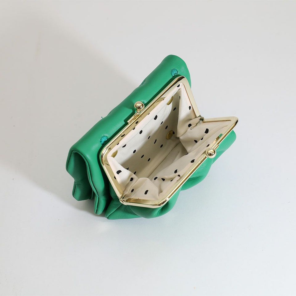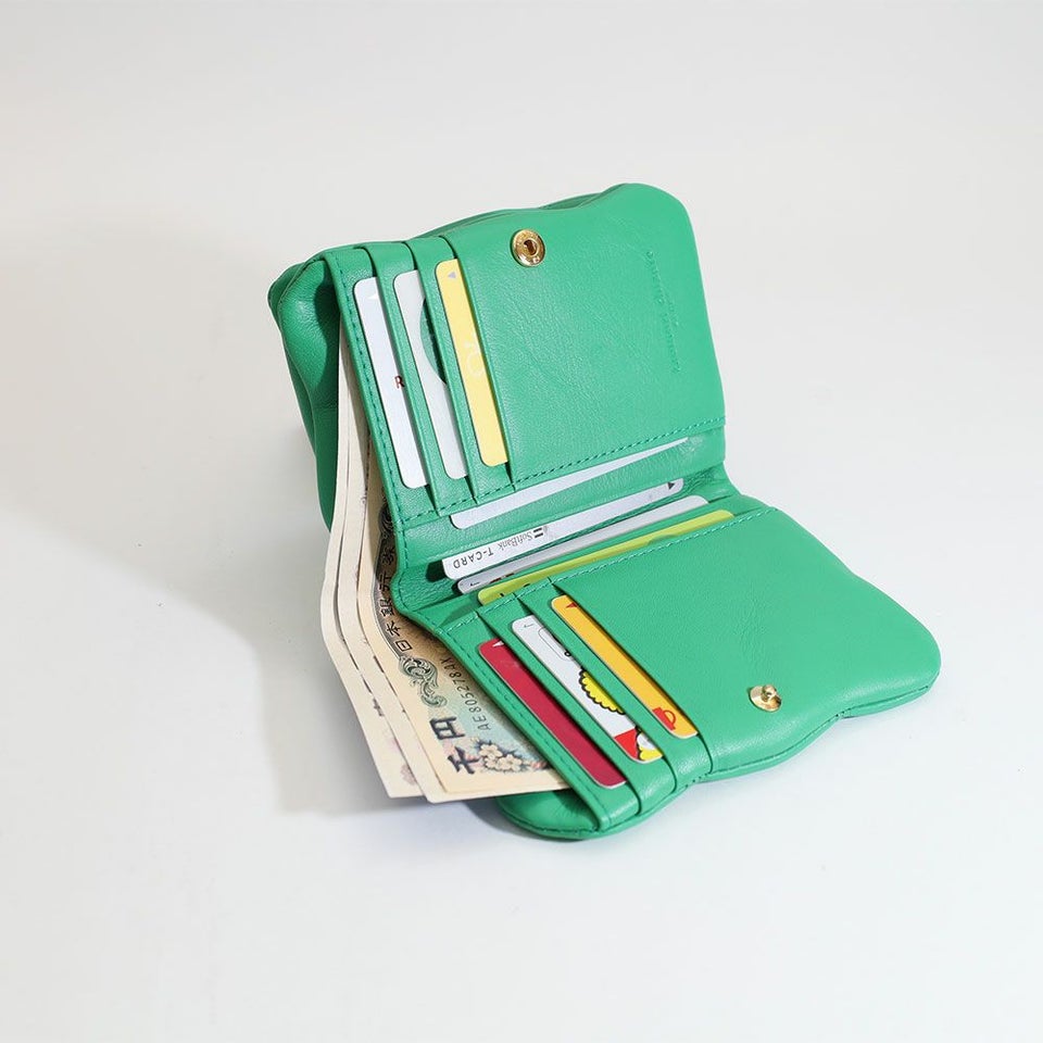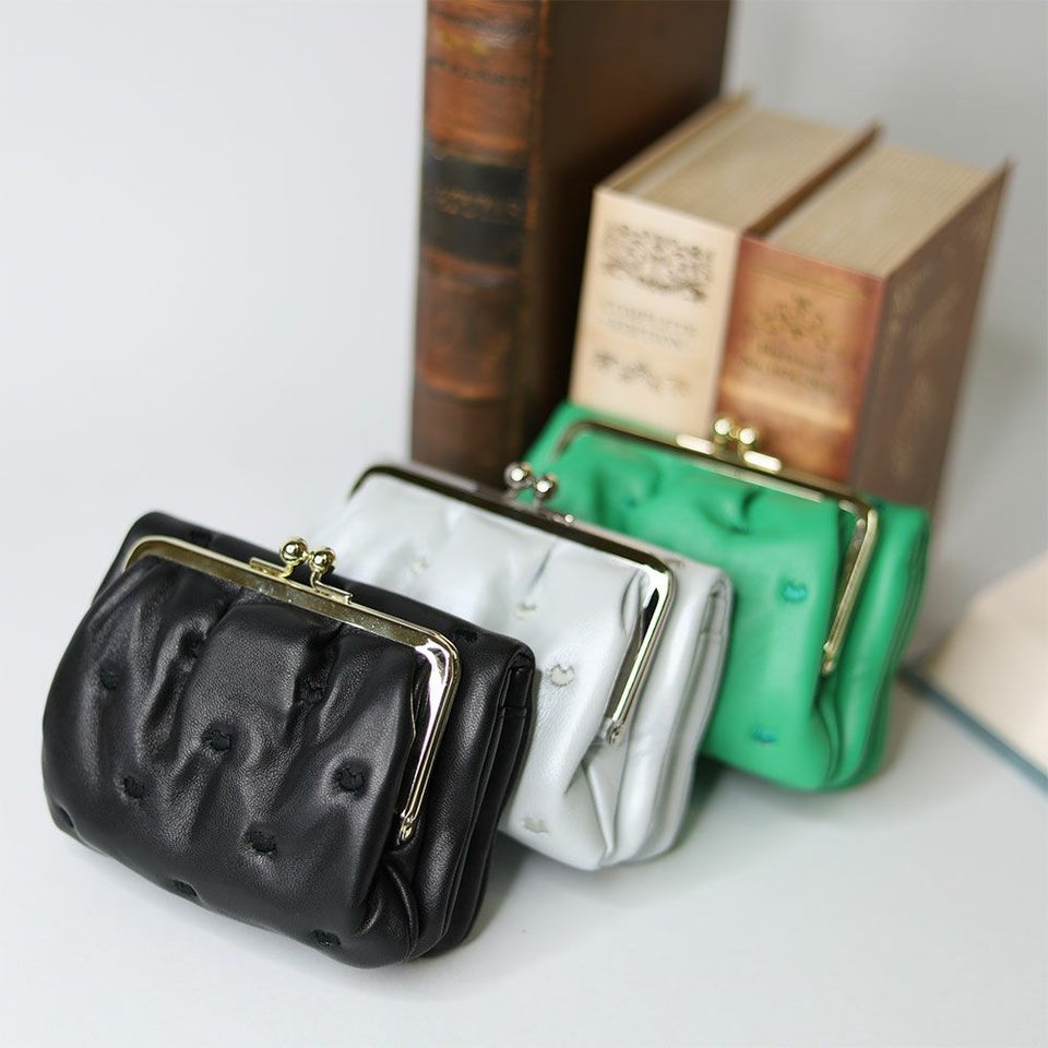 ころんと丸いシルエットが愛らしいがま口タイプ。見た目だけでなく使いやすさも兼ね備えた一品です。