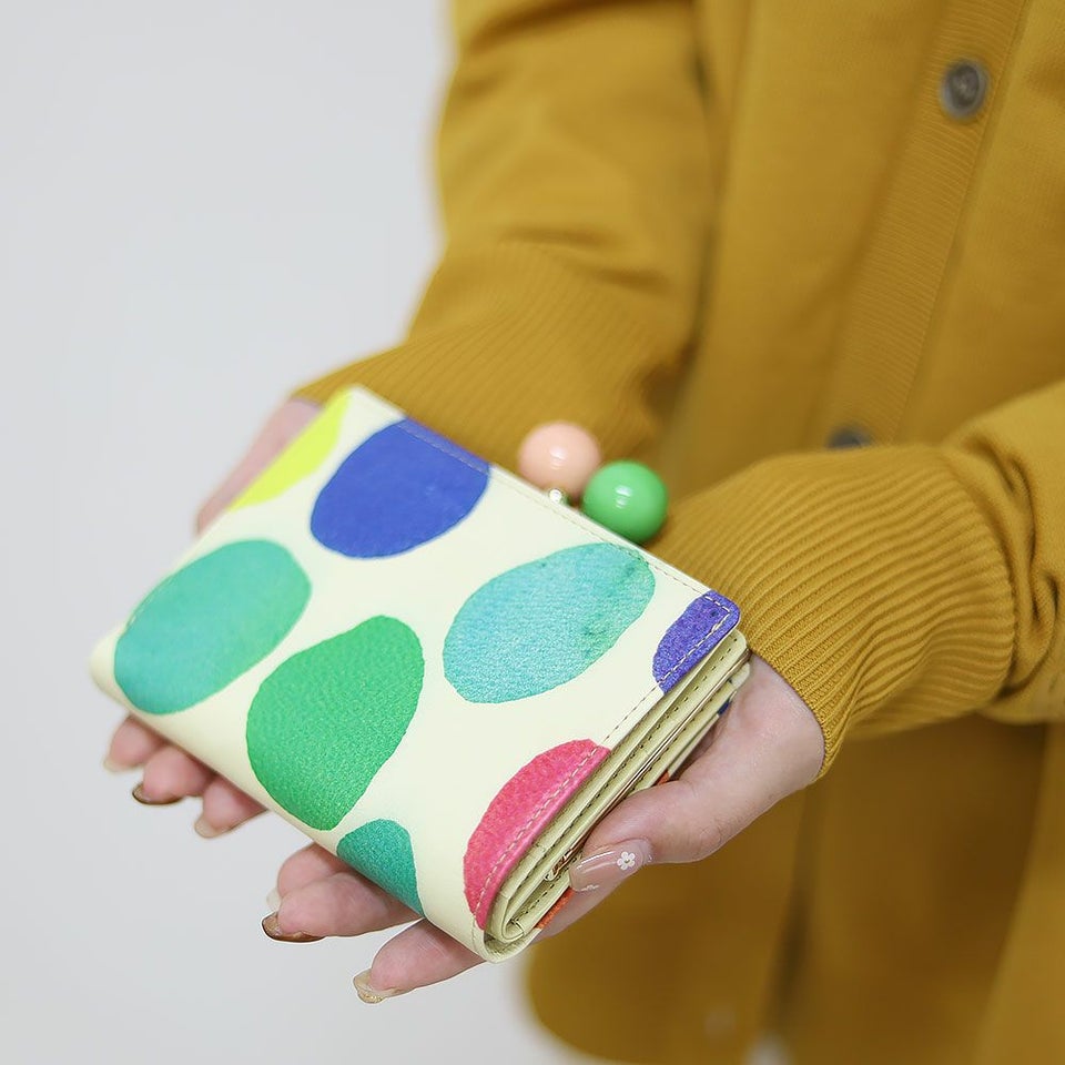 鮮やかなドットデザインとスリムなシルエットが相まって、毎日の持ち歩きが楽しみになるアイテムです。他にはないカラフルさで、バッグから取り出す瞬間も華やかな気分に。ギフトにも喜ばれる、日常を明るく彩るがま口財布です。