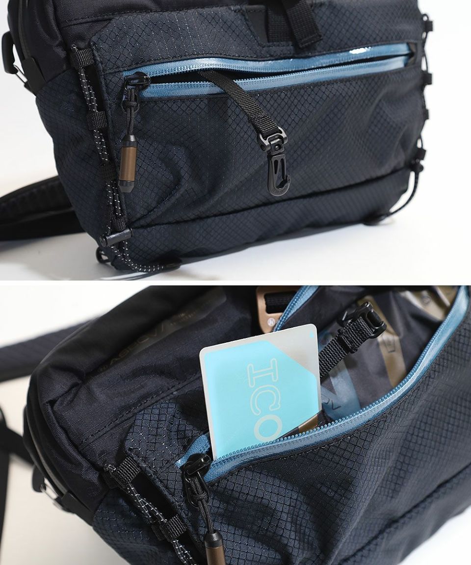 メッシュポケットや仕切りの付いたポケットを備えたメイン収納に、容量を調整できるハンモックポケットなど、単体利用時も機能性抜群のサコッシュです。